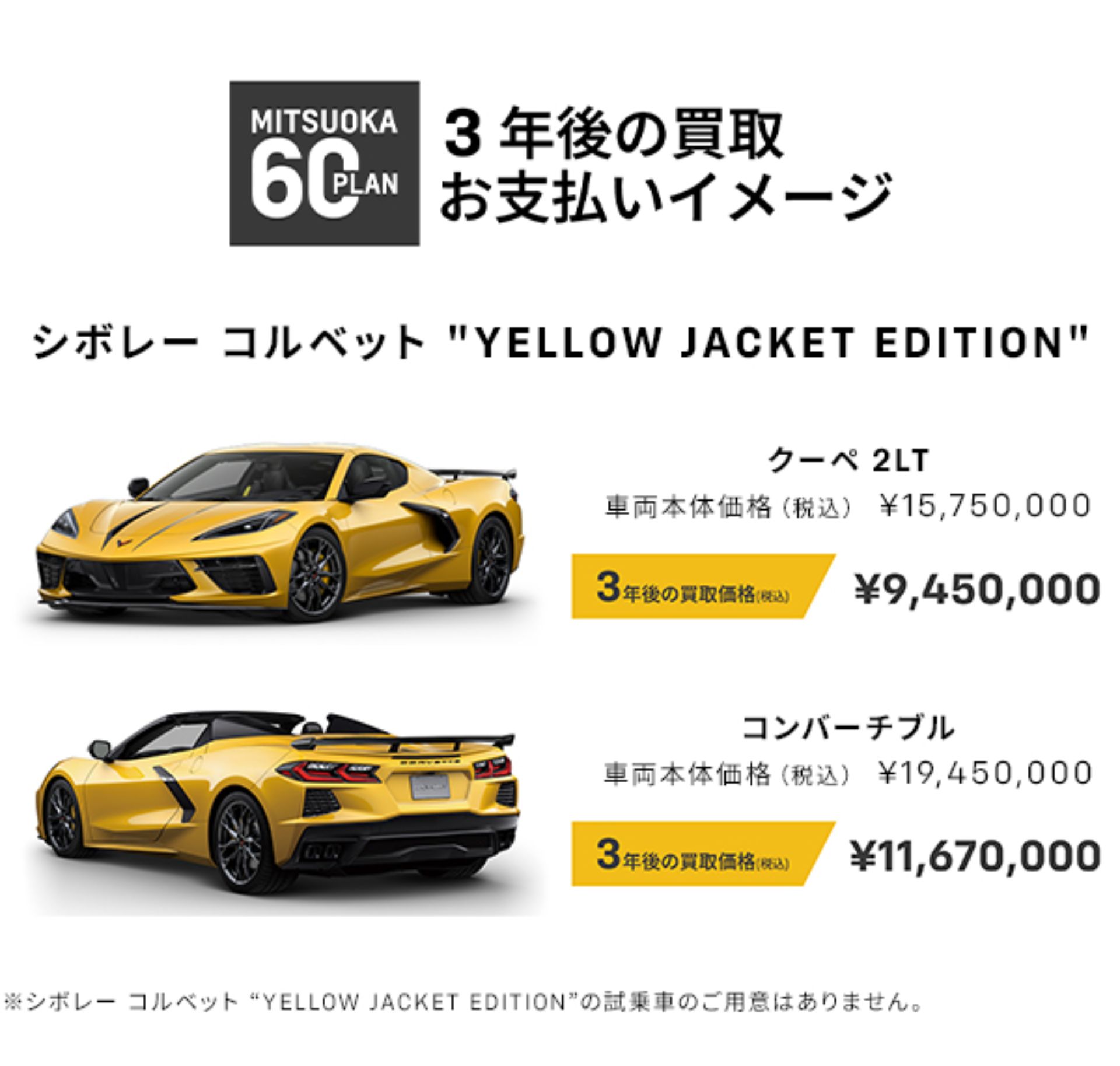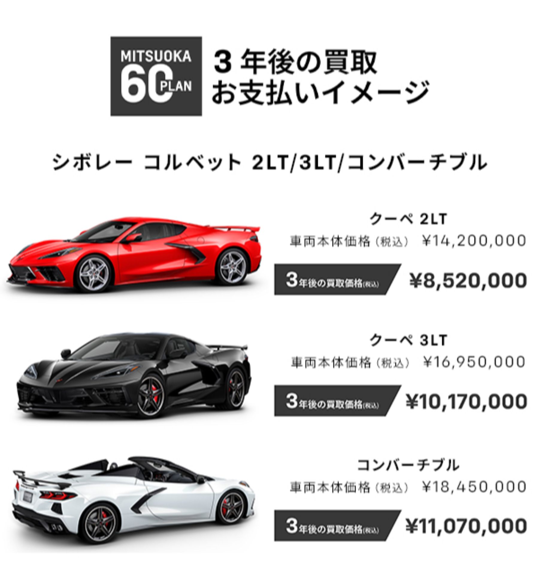 【11/15(土)-12/21(日)】シボレー コルベット MITSUOKA 60(シックスティ)プラン - 3年後の下取(買取)価格60%保証 -