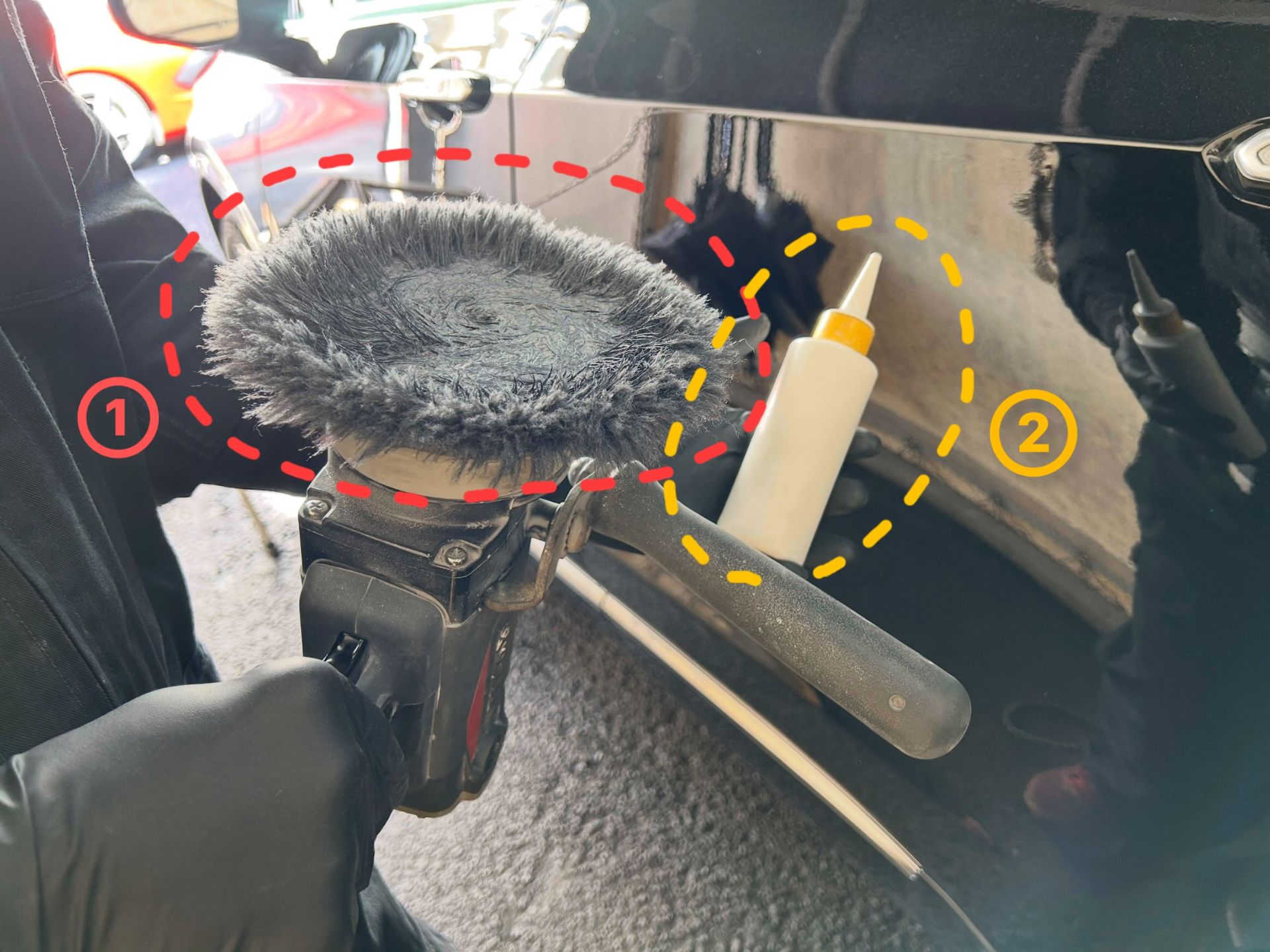 ①は「 バフ 」②は「 コンパウンド 」といいます👀この3点セットで下地処理を行っていきます✨