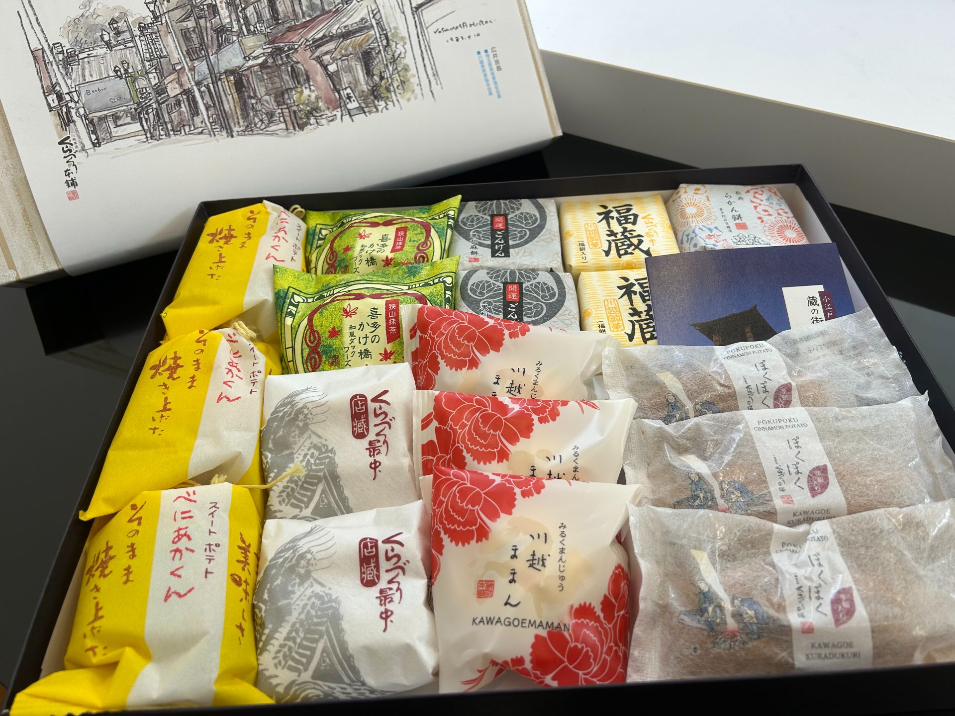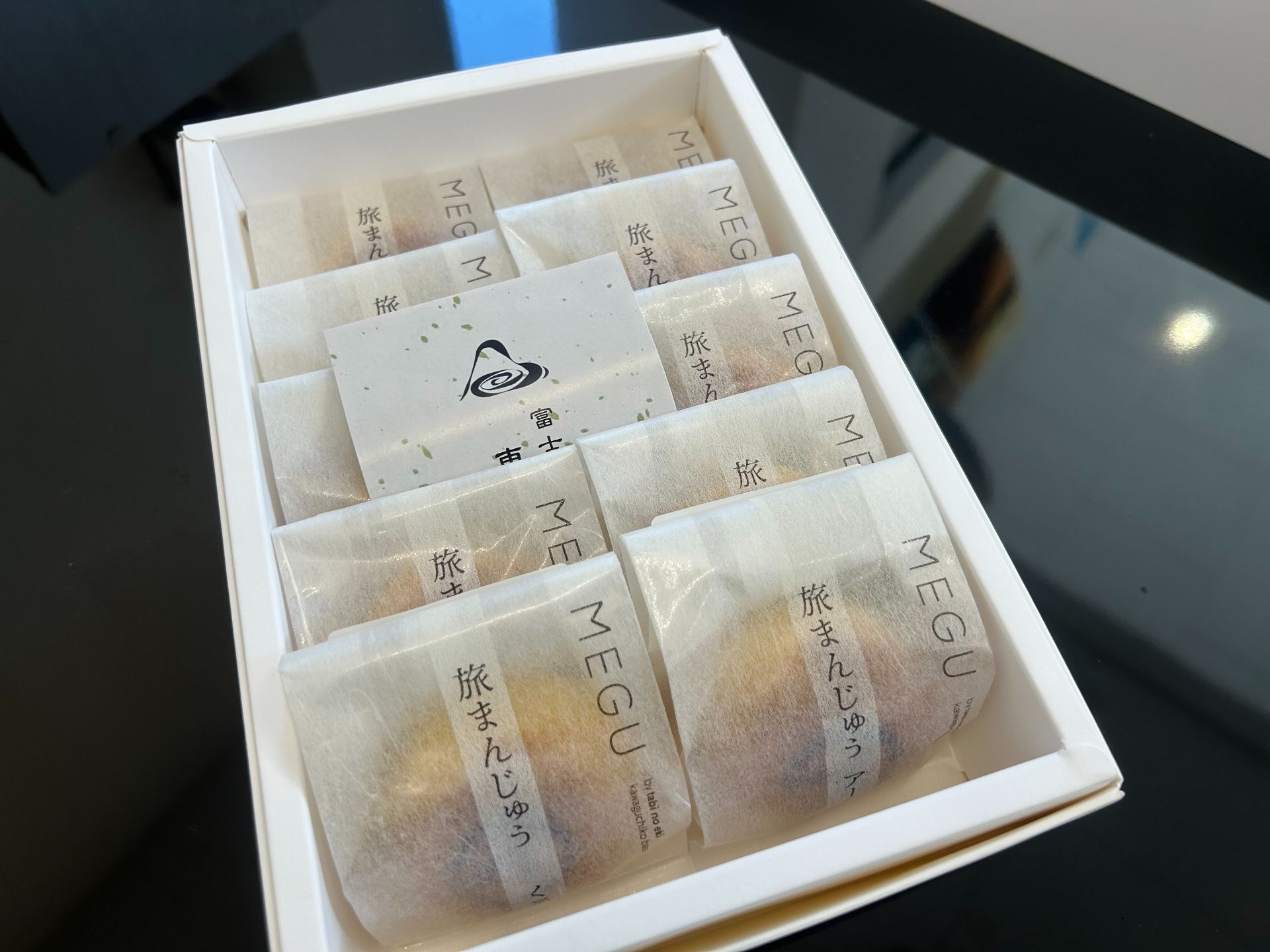 沢山の種類が入っており、スタッフ全員でいただきました🤤私は「開運ごんげん(黒胡麻餅)」をいただきました!