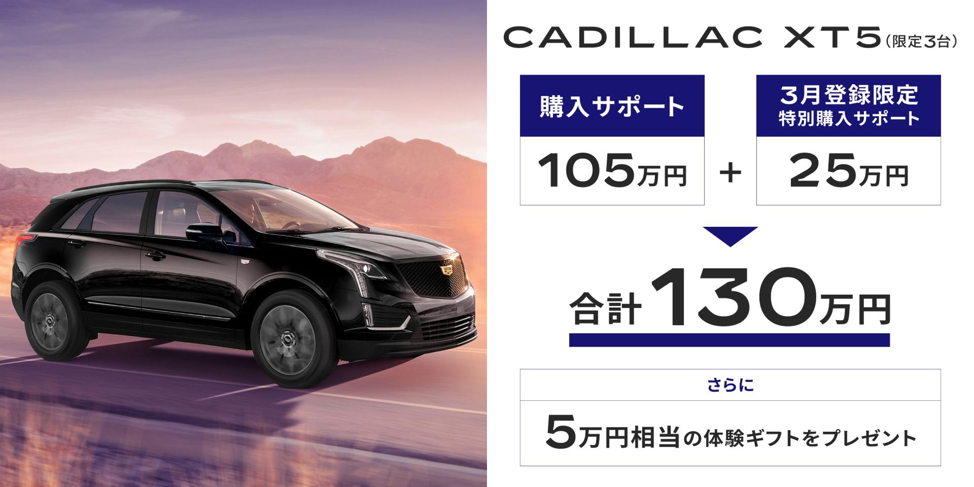フェア期間中にキャデラック/シボレーの新車対象モデルをご成約かつ3月31日(火)までにご登録が完了が条件となります。