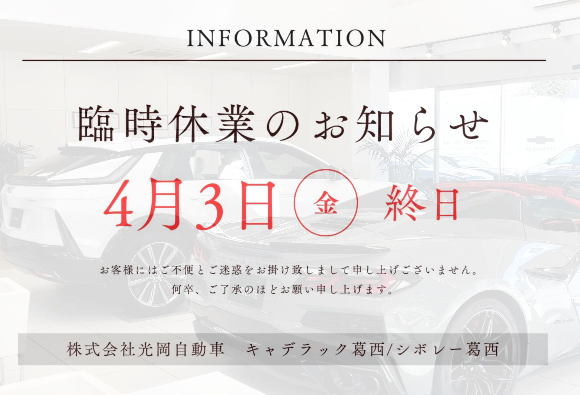 【 4月3日(金)】臨時休業のお知らせ