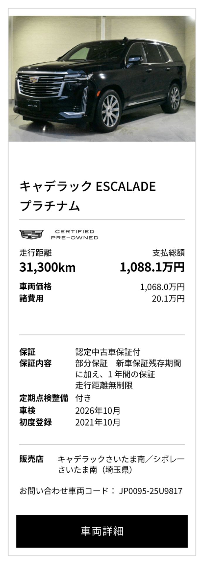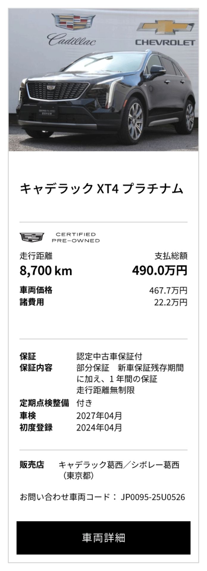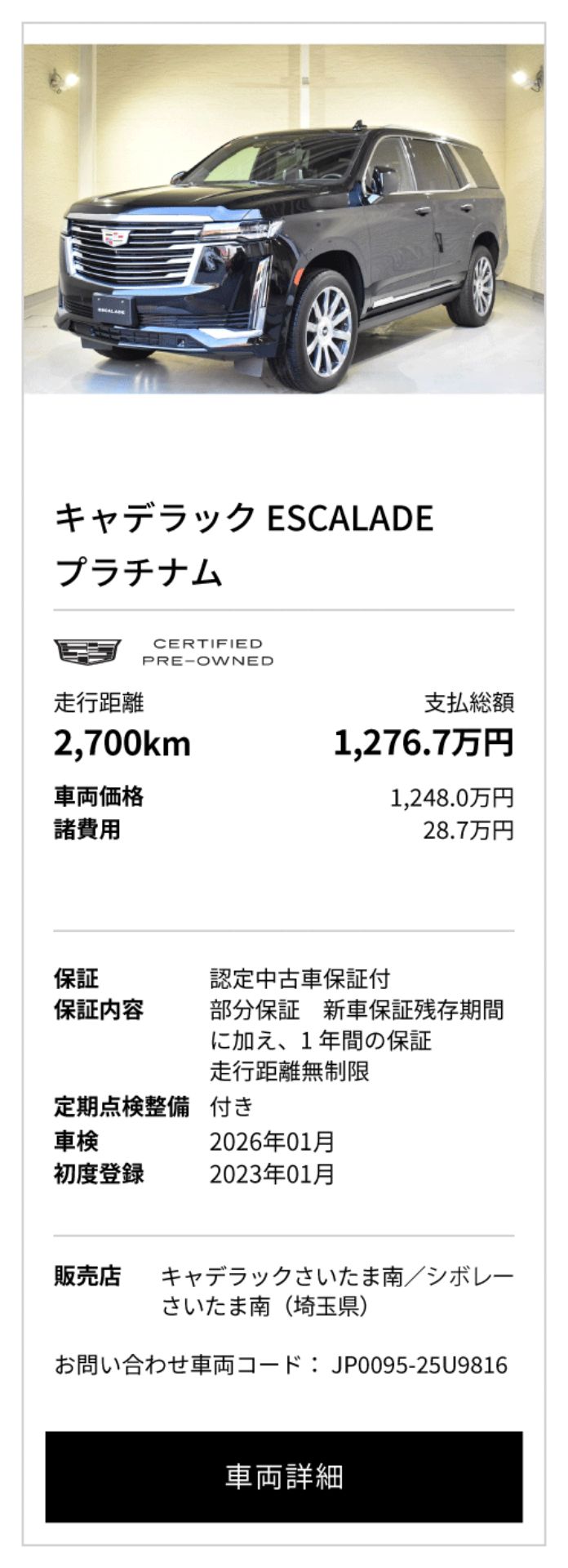 キャデラック 認定中古車(シボレー葛西/さいたま南/高崎)