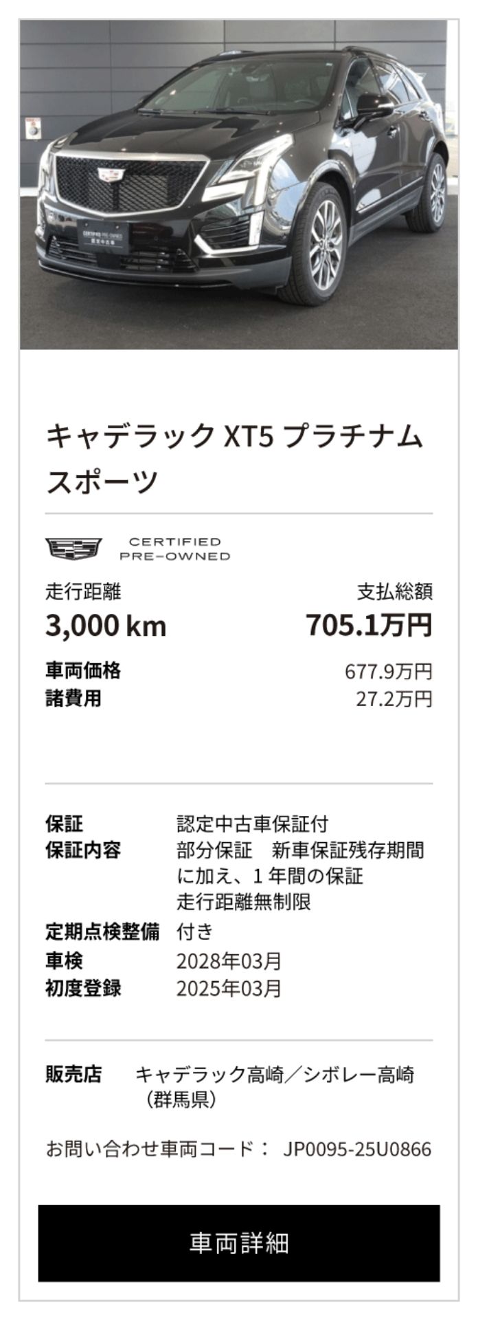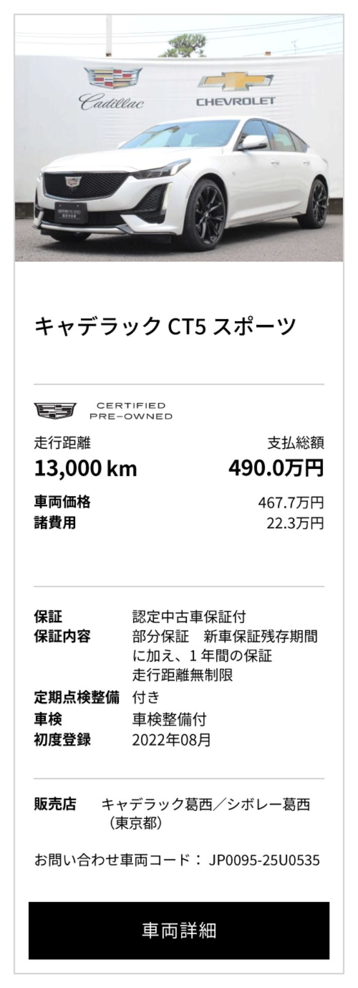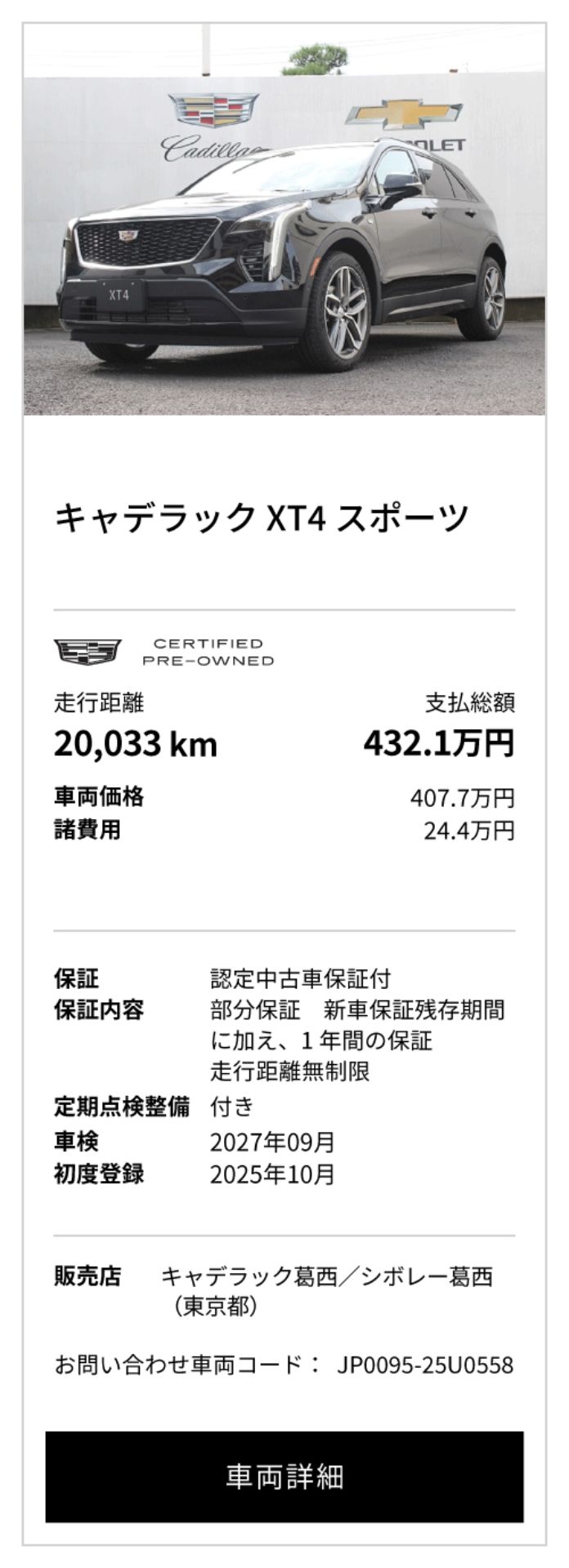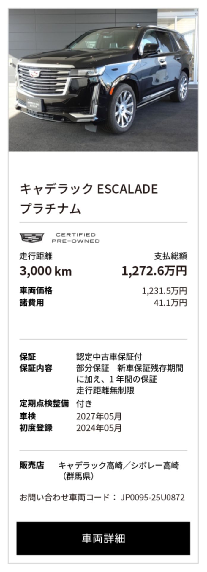 キャデラック 認定中古車(シボレー葛西/さいたま南/高崎)