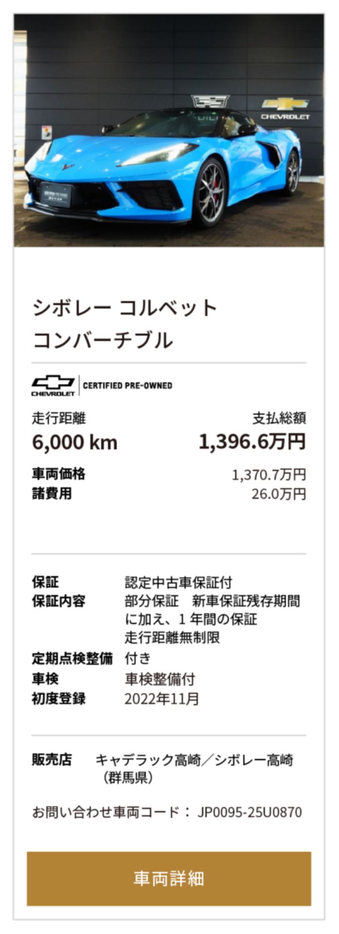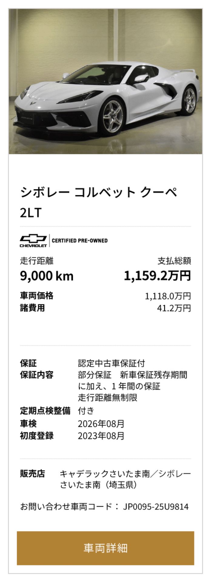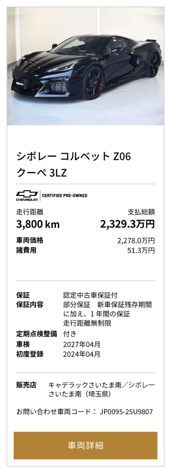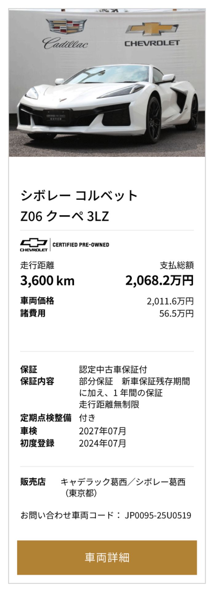 シボレー コルベット Z06 掲載台数2台(11/1時点)