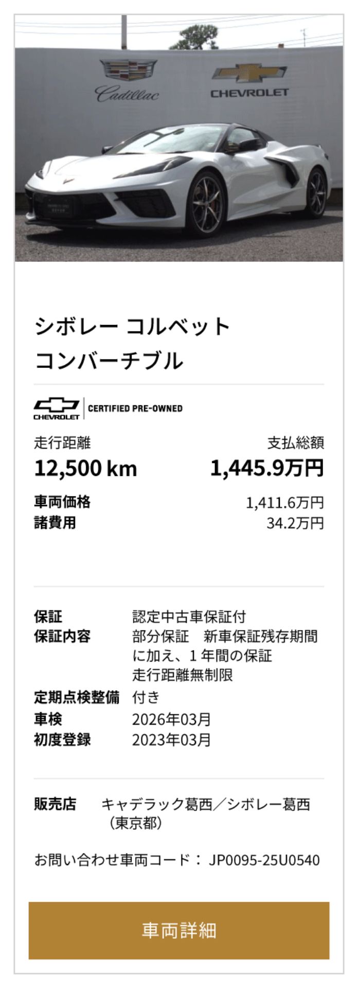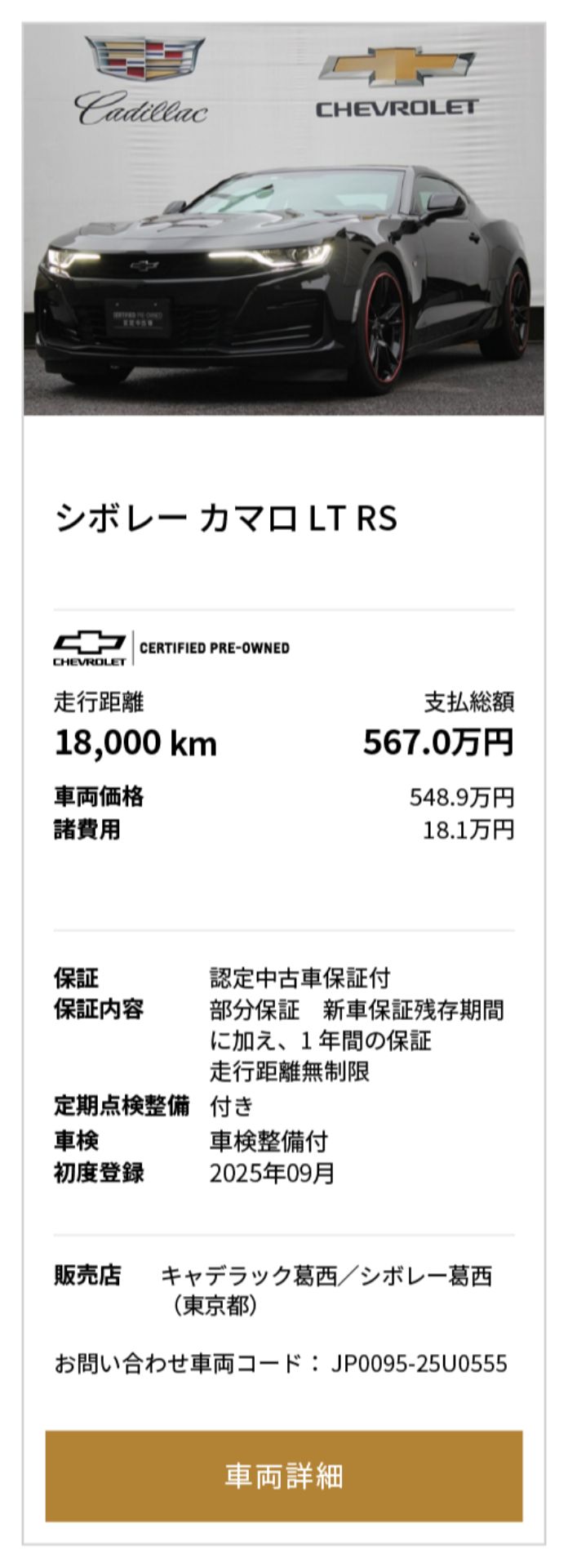 ※本ページはキャデラック高崎/シボレー高崎、キャデラックさいたま南/シボレーさいたま南、キャデラック葛西/シボレー葛西の3店舗合同企画となります。