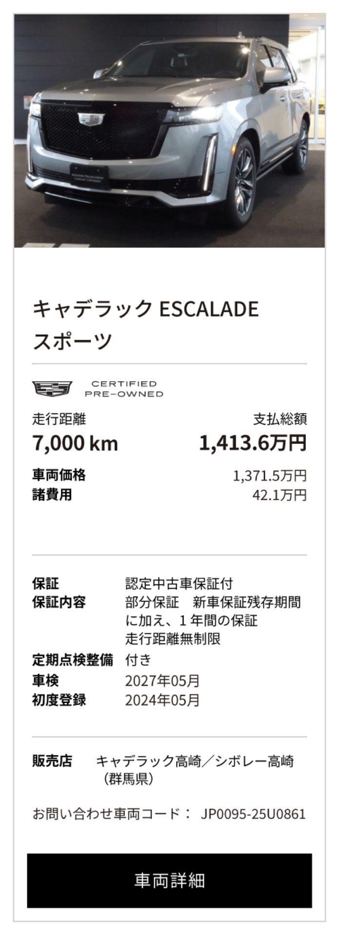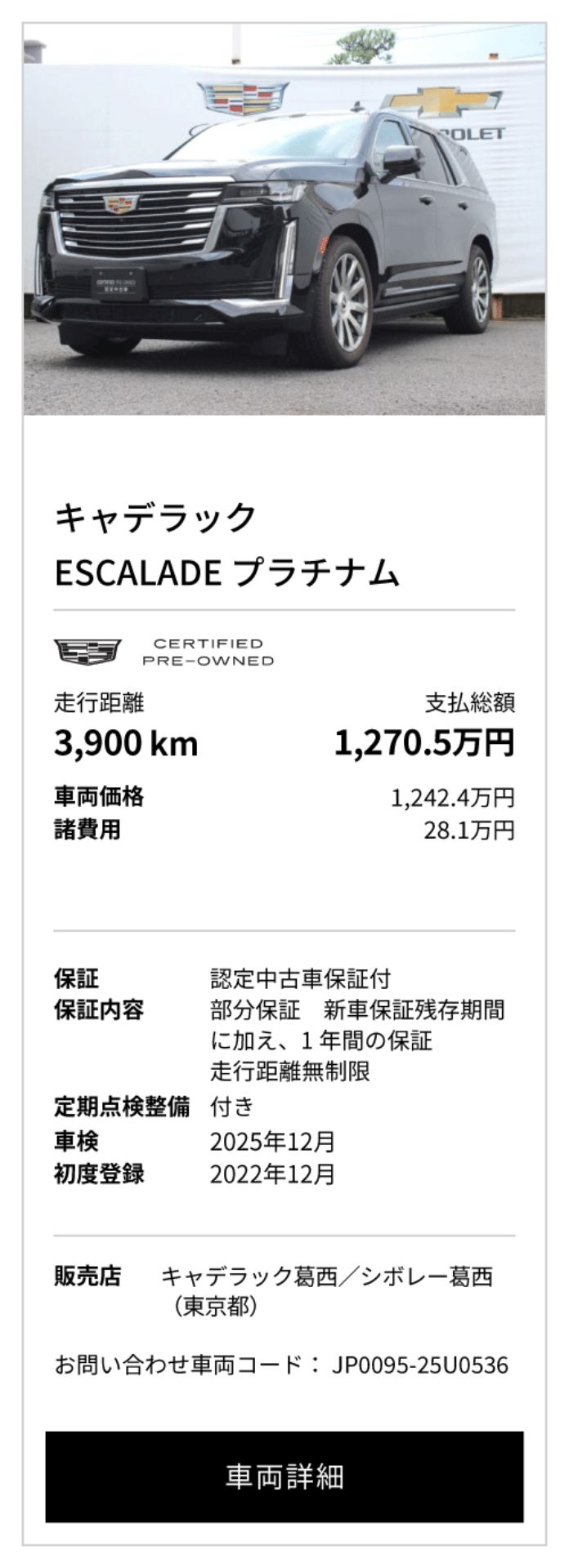 キャデラック エスカレード 掲載台数7台(11/1時点)