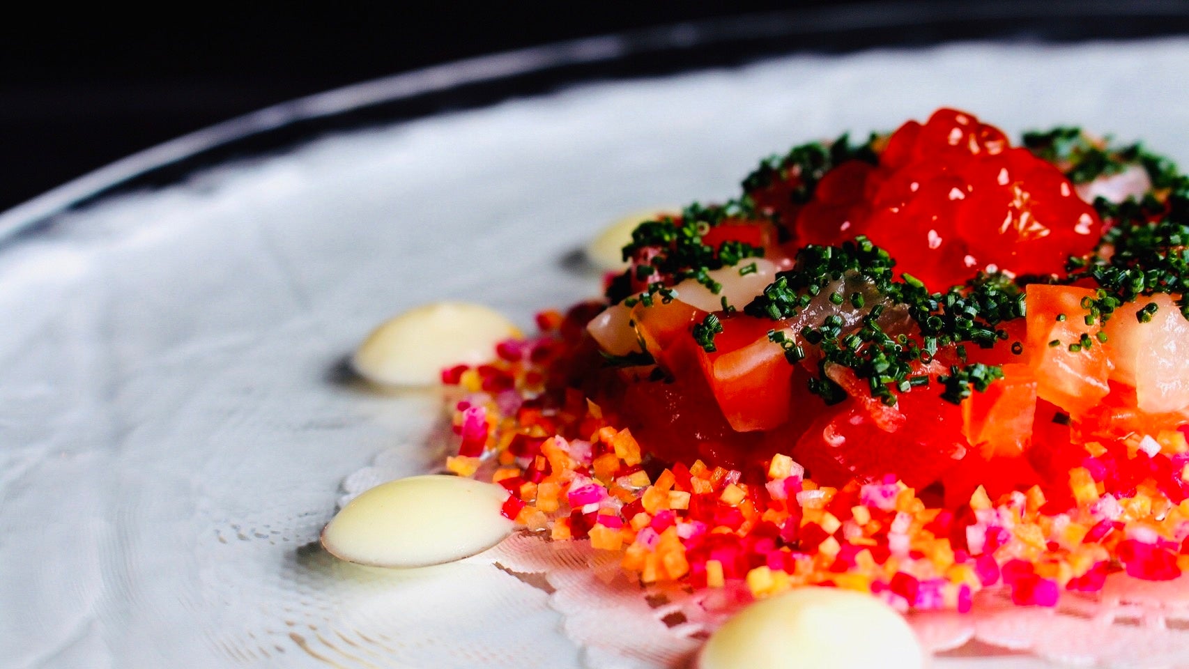 肉フレンチの良さを感じられる『KING』や『肉ミルフィーユ』はそのままに、『QUEEN』と名付けた様々な魚介を使用したタルタルサラダ仕立ての優雅な前菜をご用意。