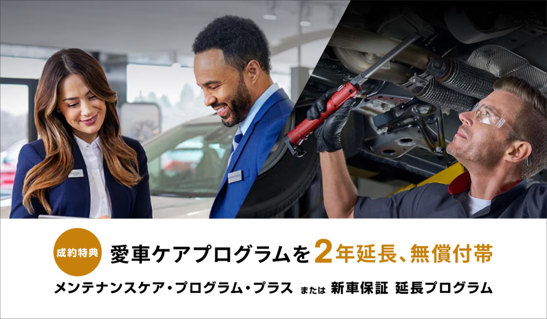 「新車保証 延長プログラム(WARRANTY PLUS)」または「メンテナンスケア・プログラム・プラス」のいずれかをお選びいただけます。