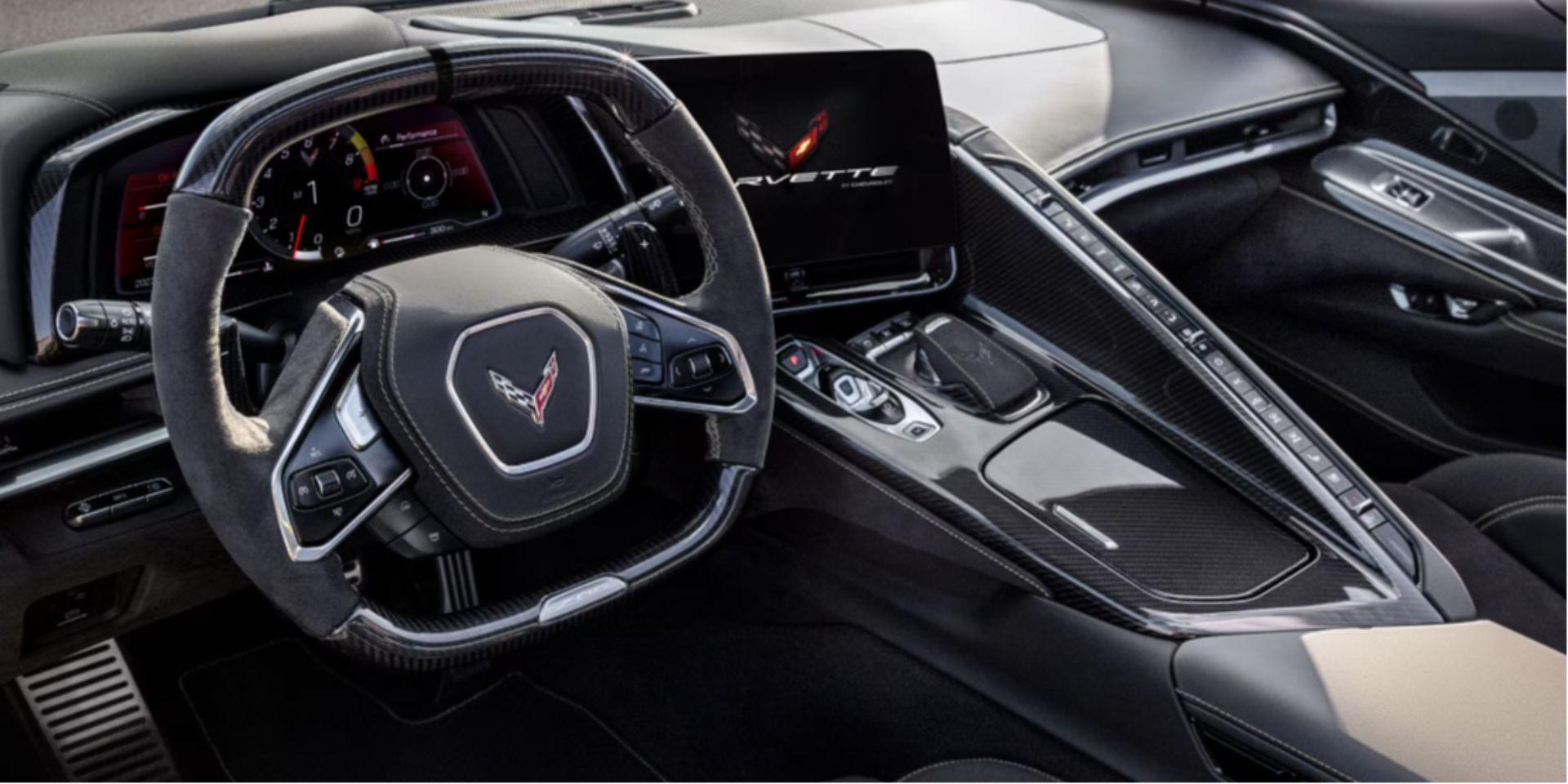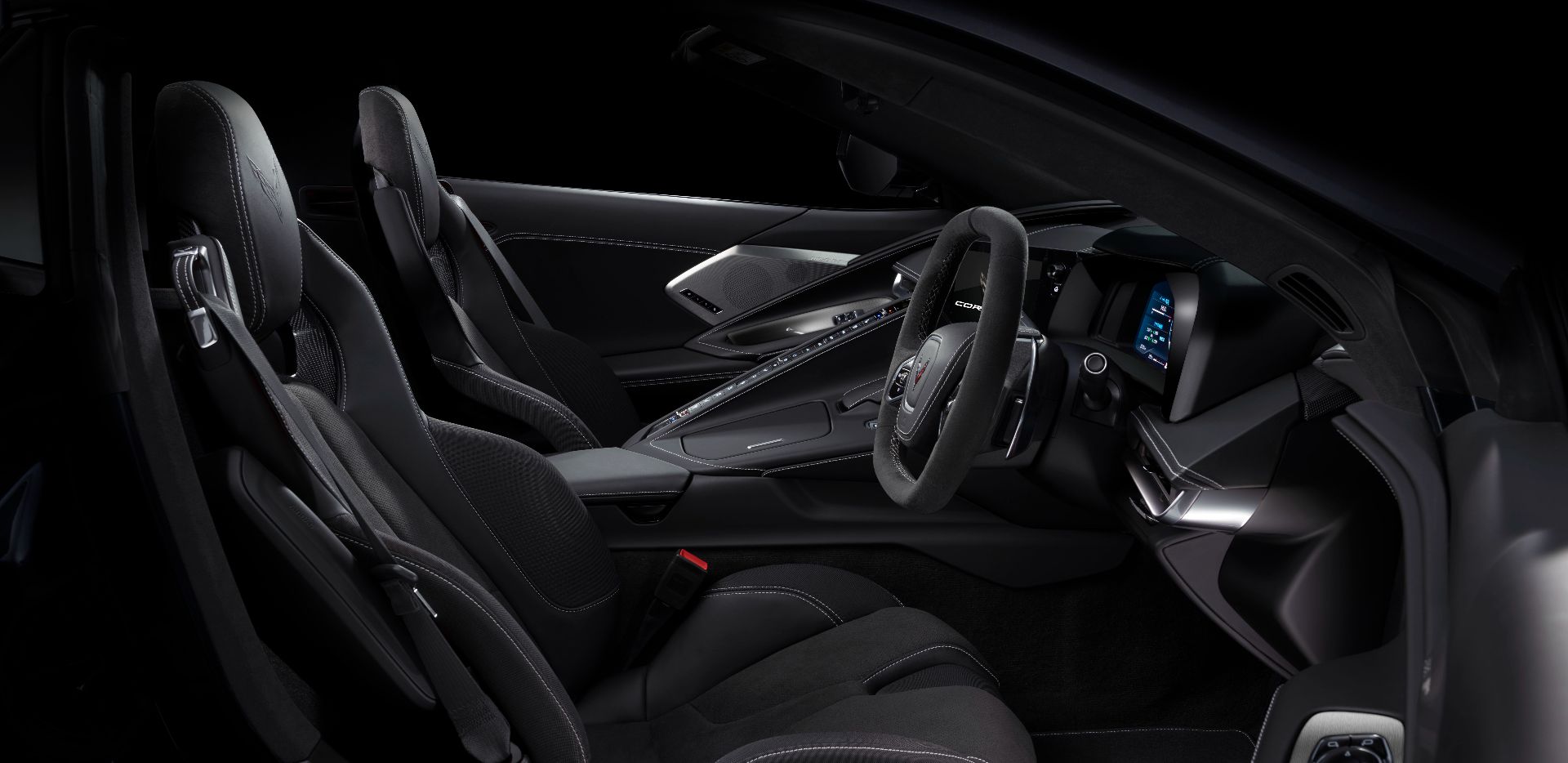 モータースポーツの世界でも輝かしい歴史と栄光を築き上げてきたコルベット。そのクロスフラッグのエンブレムにはチェッカーフラッグが描かれ、モータースポーツへの情熱とDNAが刻まれたスーパースポーツカーであることを物語っています。