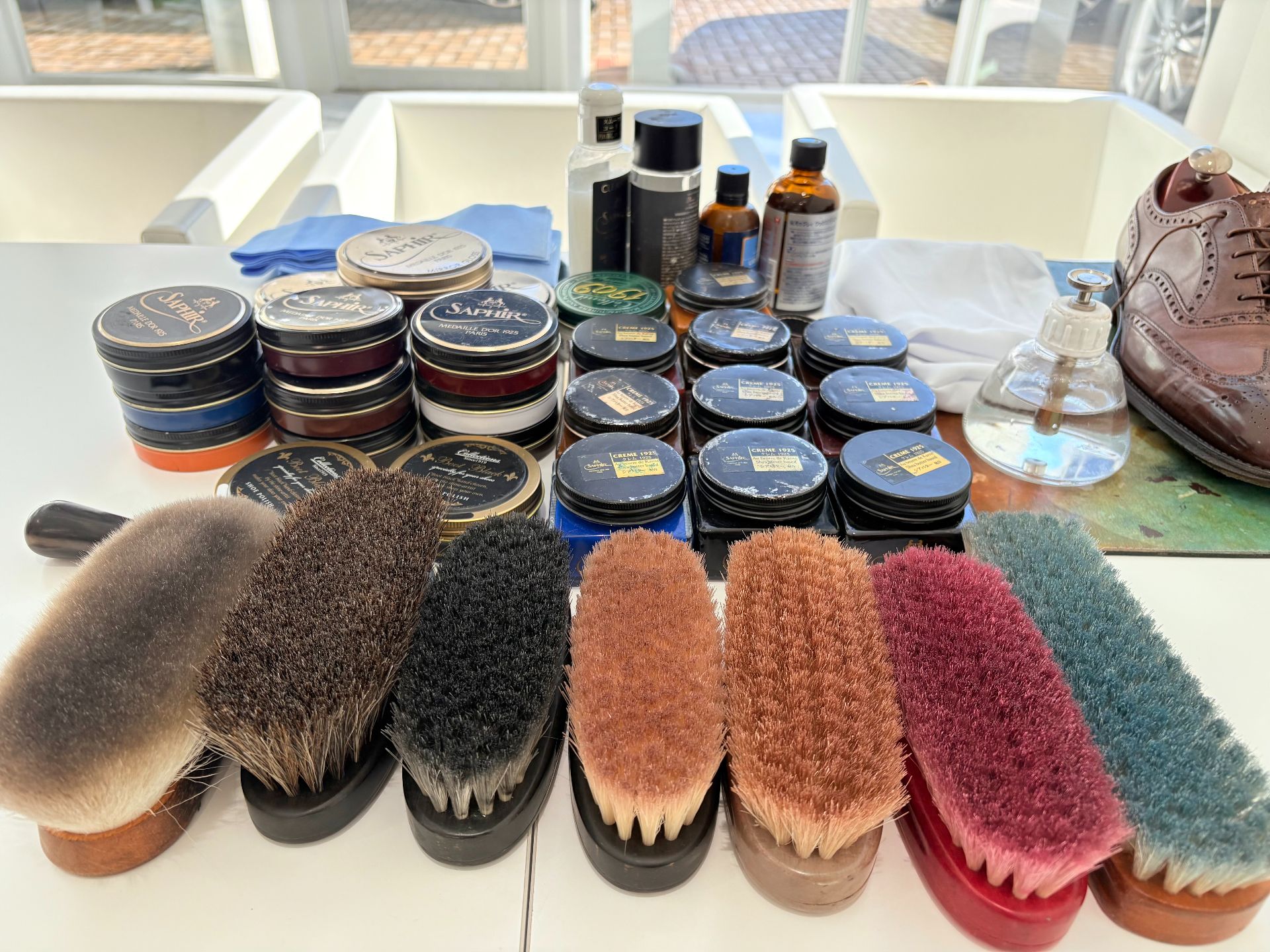 革靴もしくは革小物を持参いただき、シューシャイナー(靴磨き職人)が 靴磨きのポイントなどを会話しながら靴を磨きます。