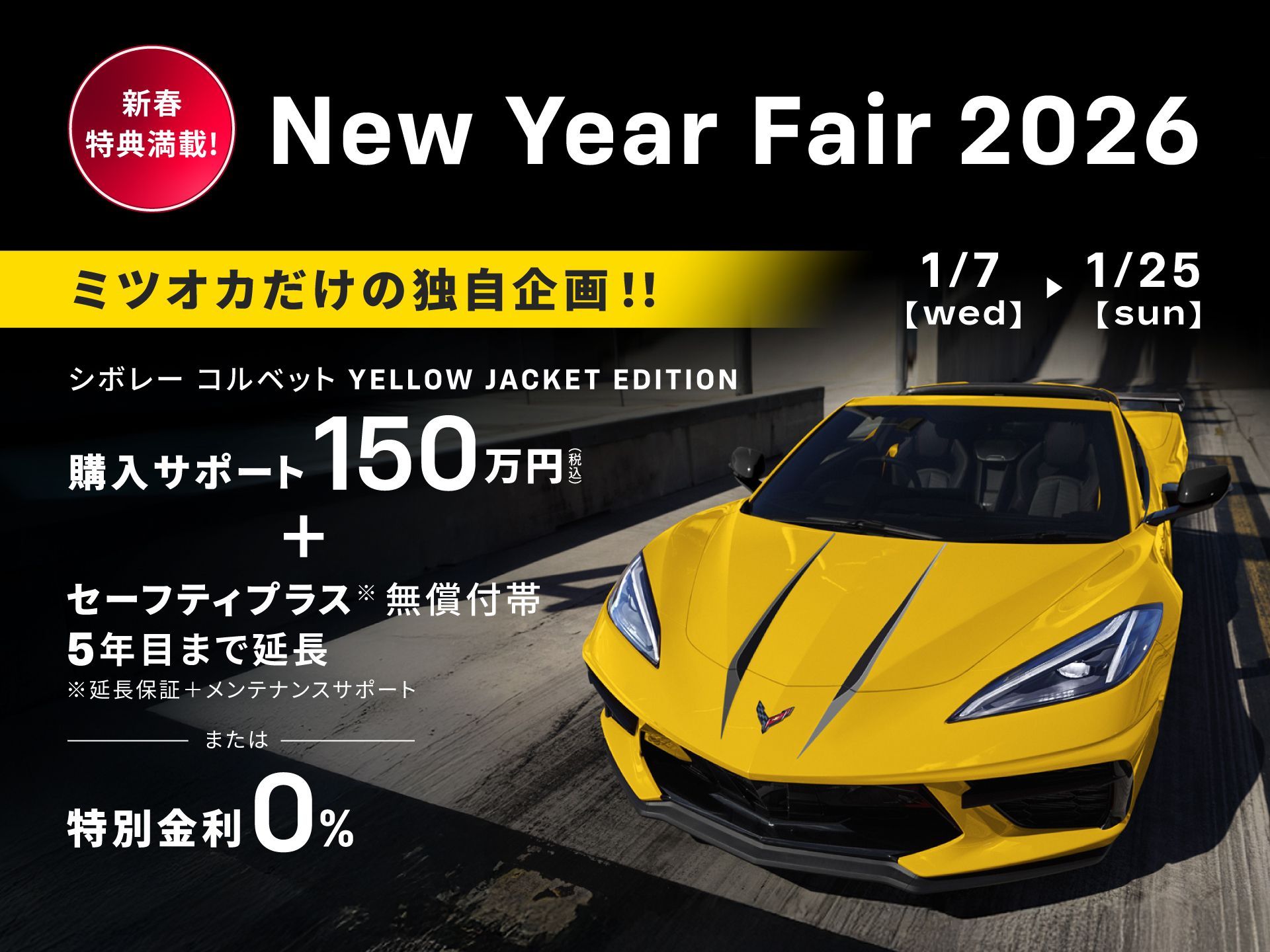 ※シボレー コルベット“YELLOW JACKET EDITION”の購入サポートはミツオカグループの各店舗で2台限りとなります。