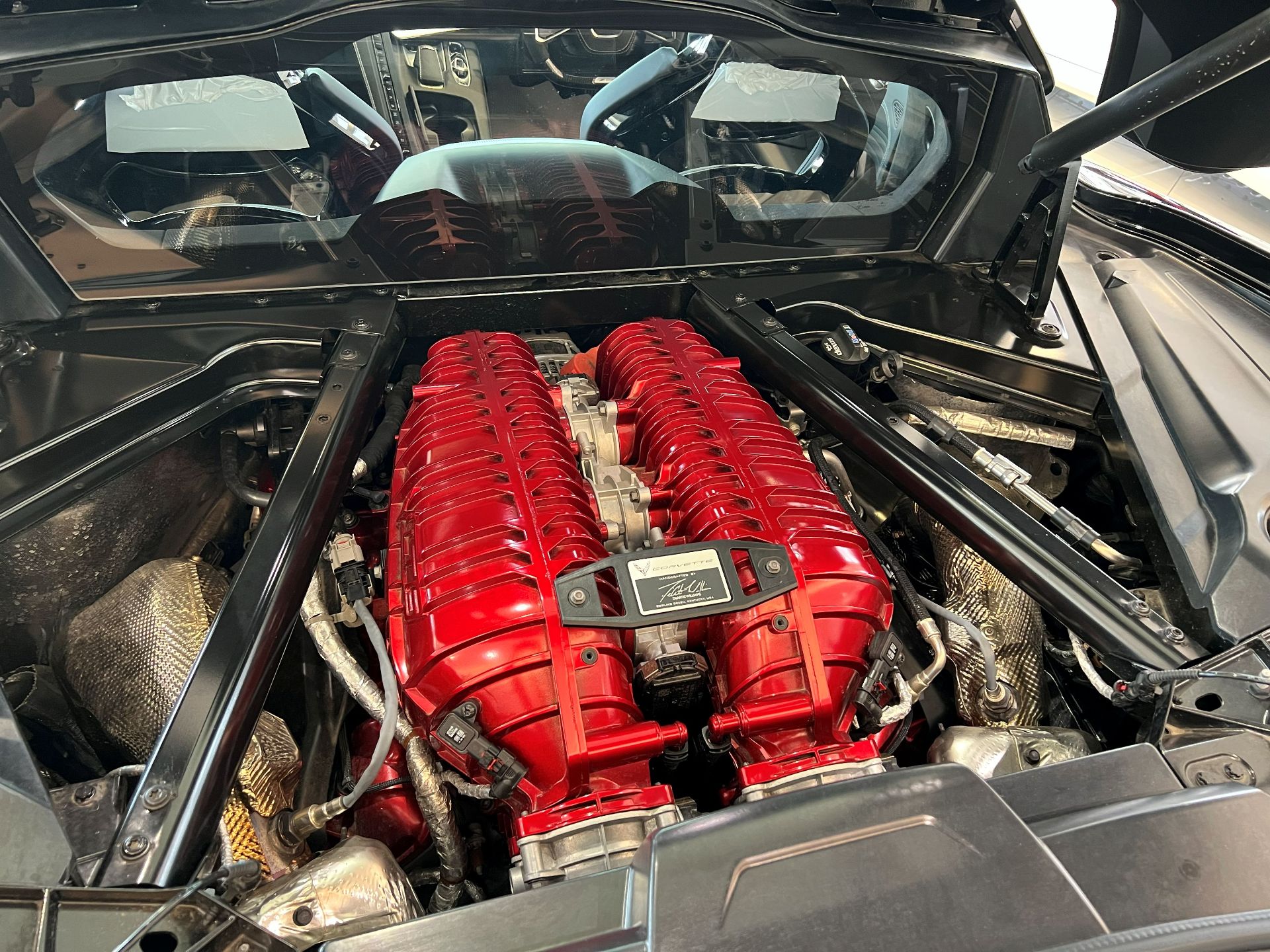 エンジンルームとキャリパーの赤が差し色になっていて、ボディとのコントラストが映えますね!