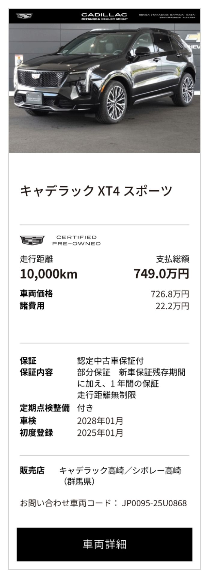 キャデラック XT4 掲載台数 6台(1/1時点)
