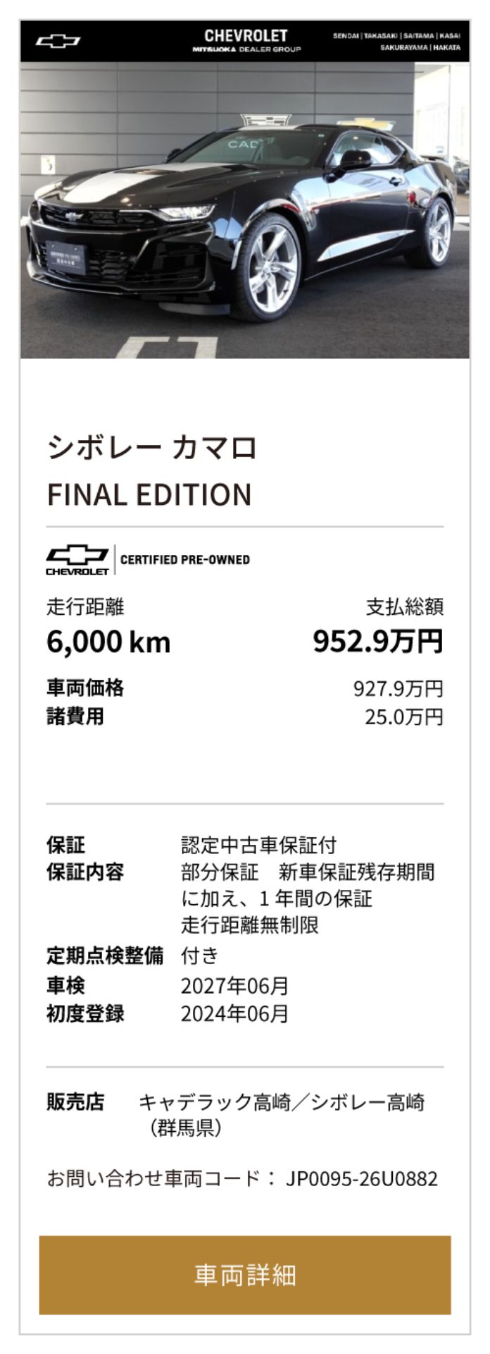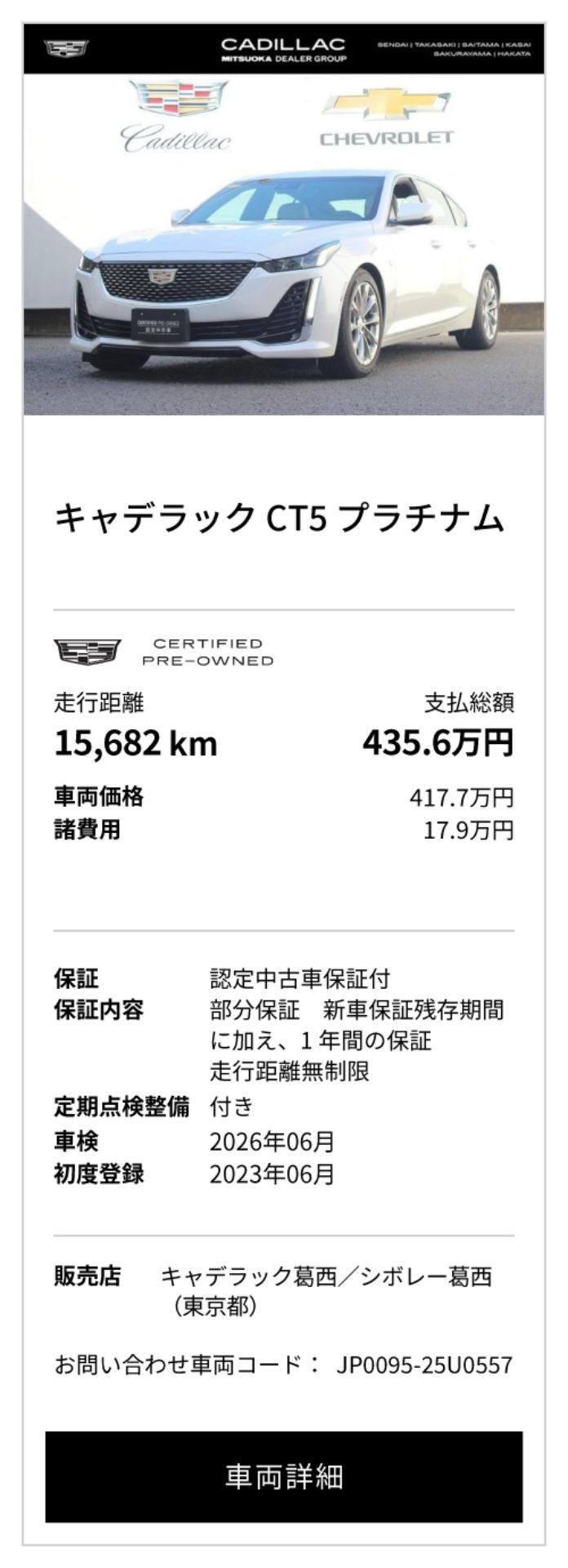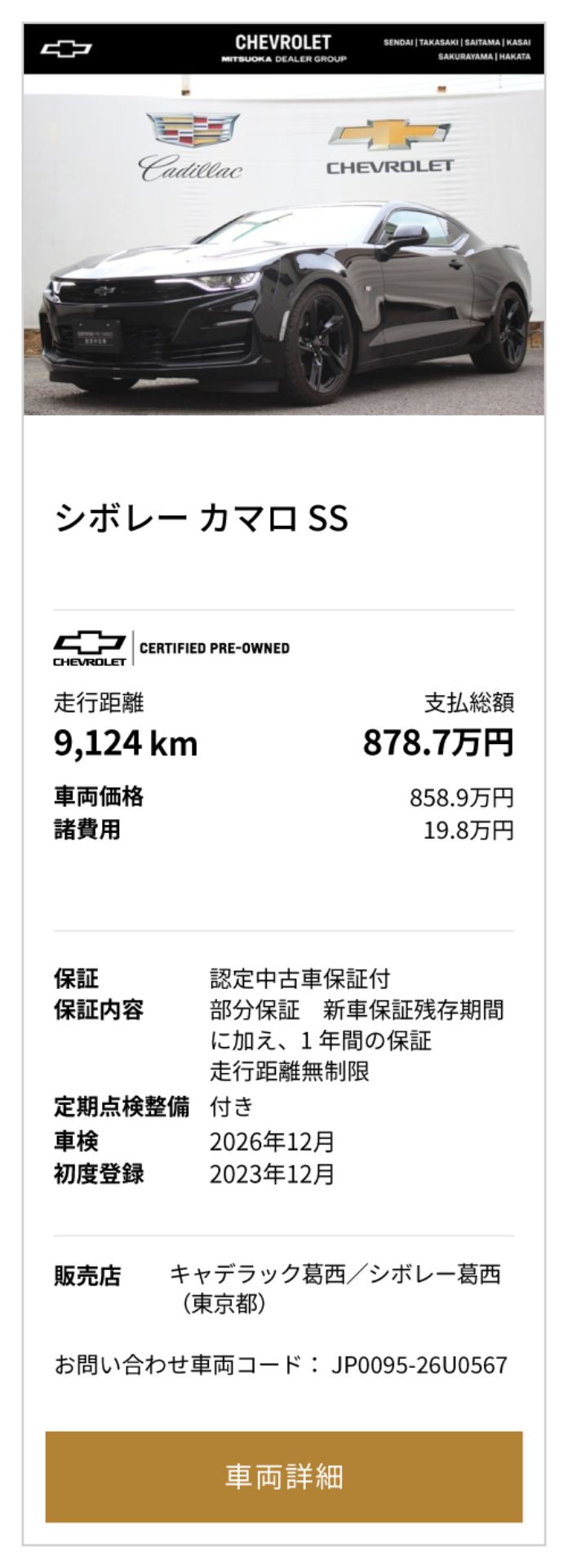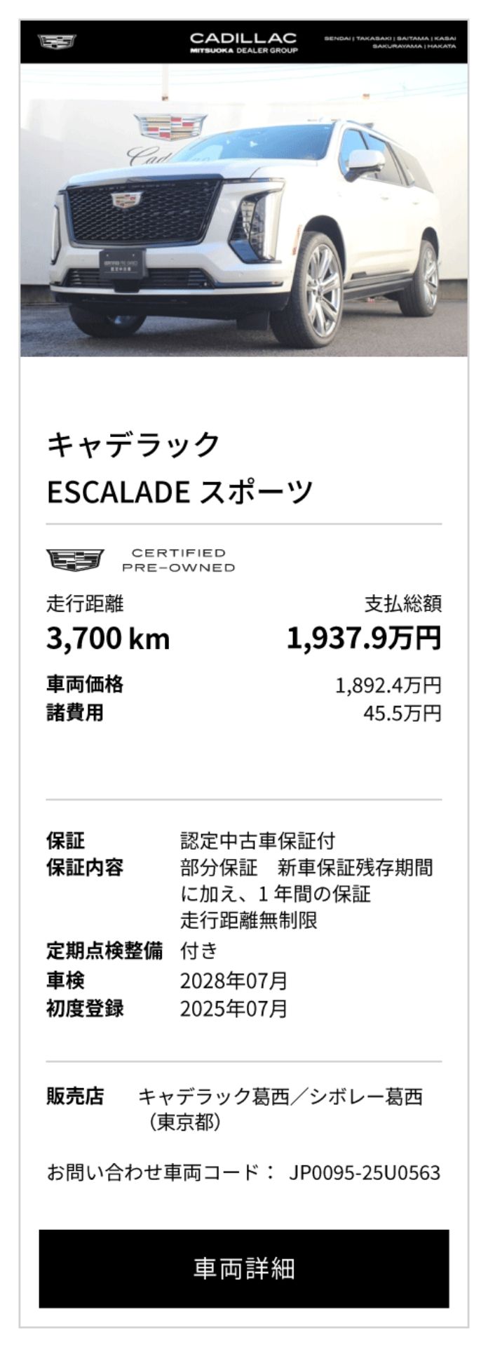 ※本ページはキャデラック高崎/シボレー高崎、キャデラックさいたま南/シボレーさいたま南、キャデラック葛西/シボレー葛西の3店舗合同企画となります。