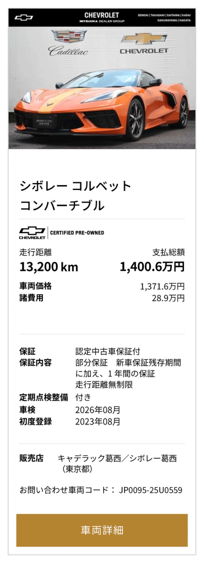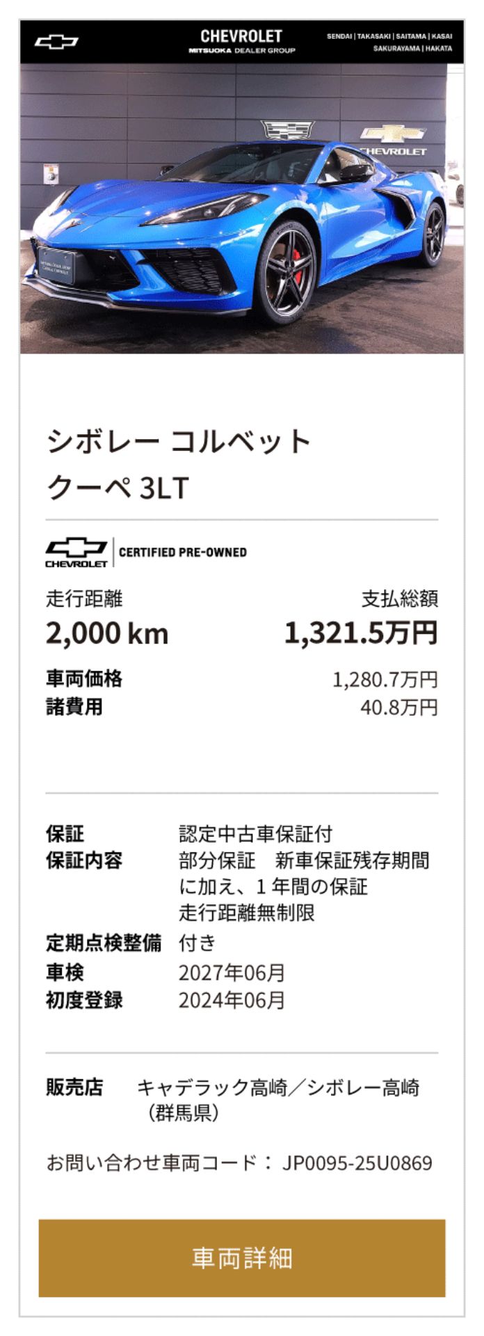 シボレー コルベット 掲載台数 6台(1/1時点)