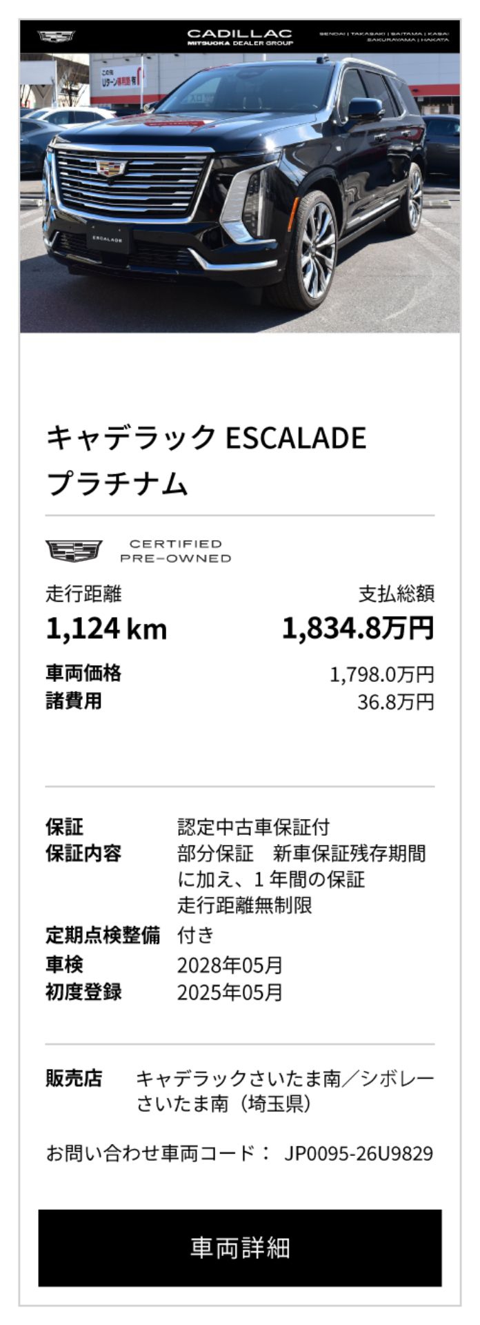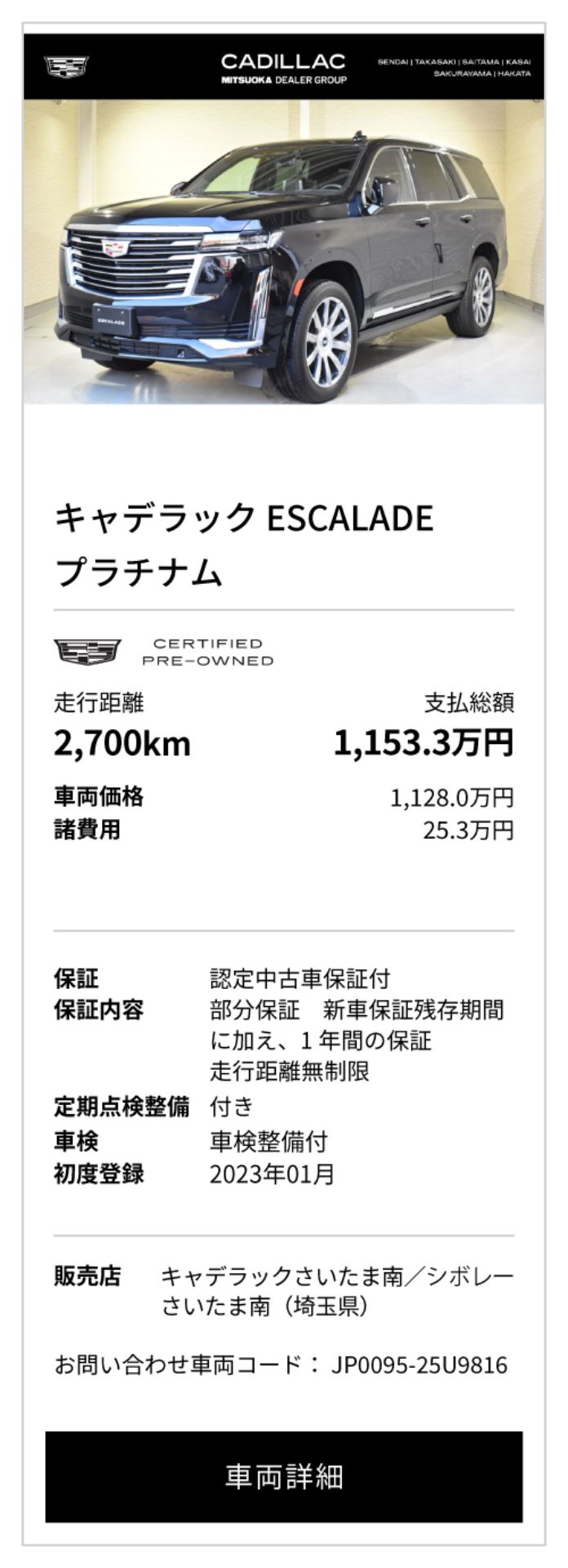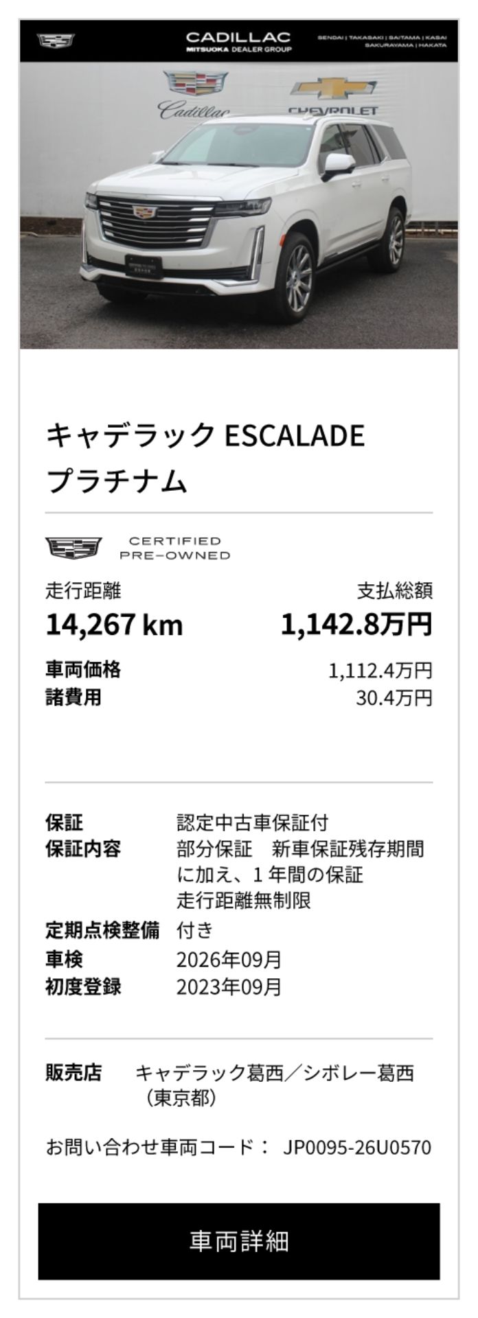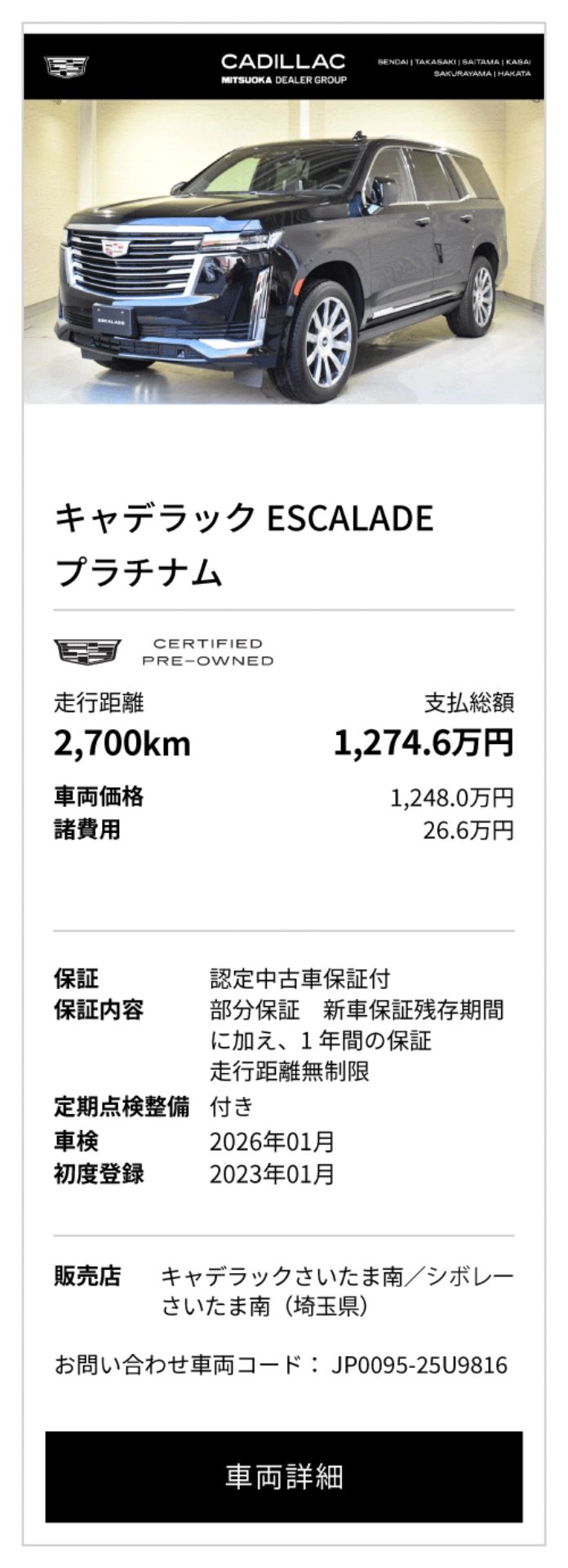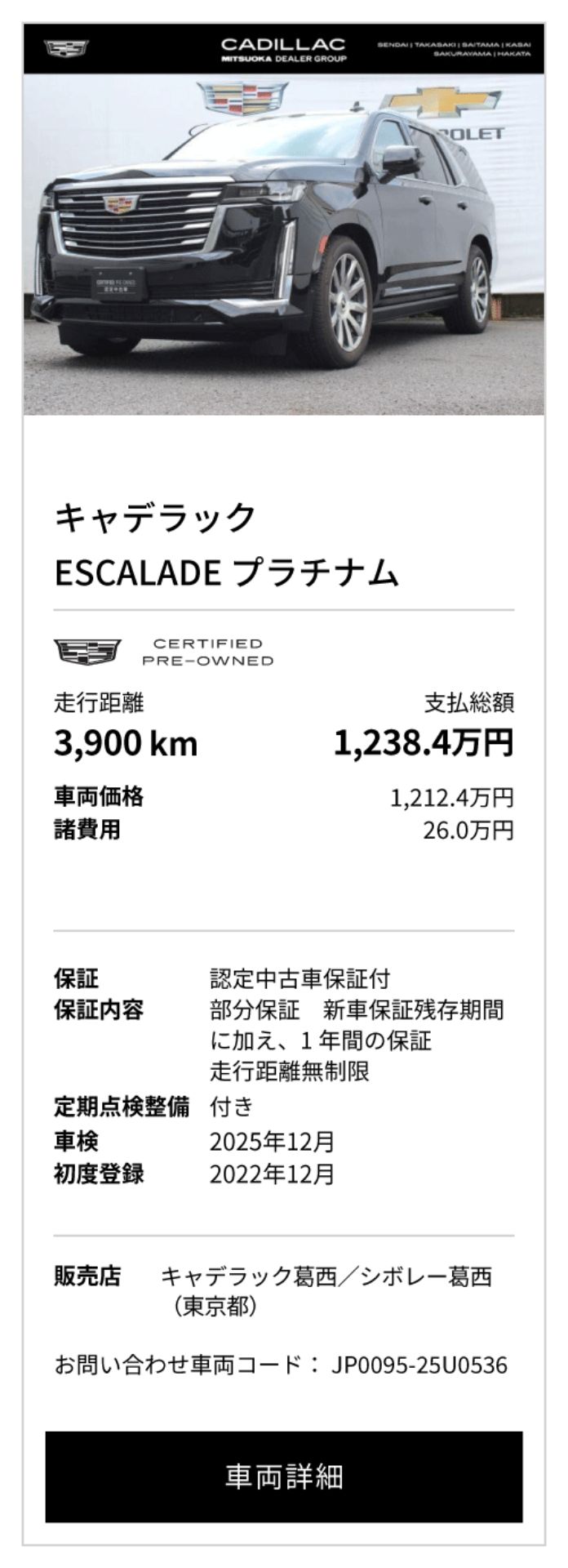 キャデラック 認定中古車(シボレー葛西/さいたま南/高崎)
