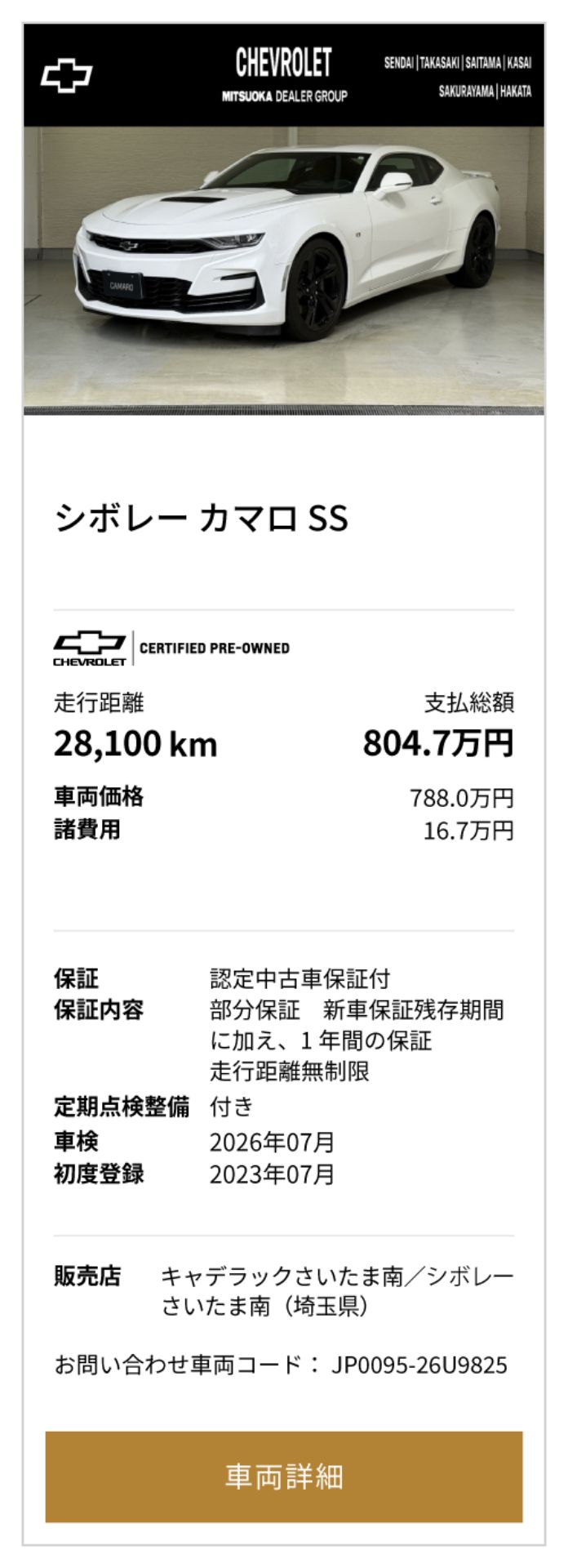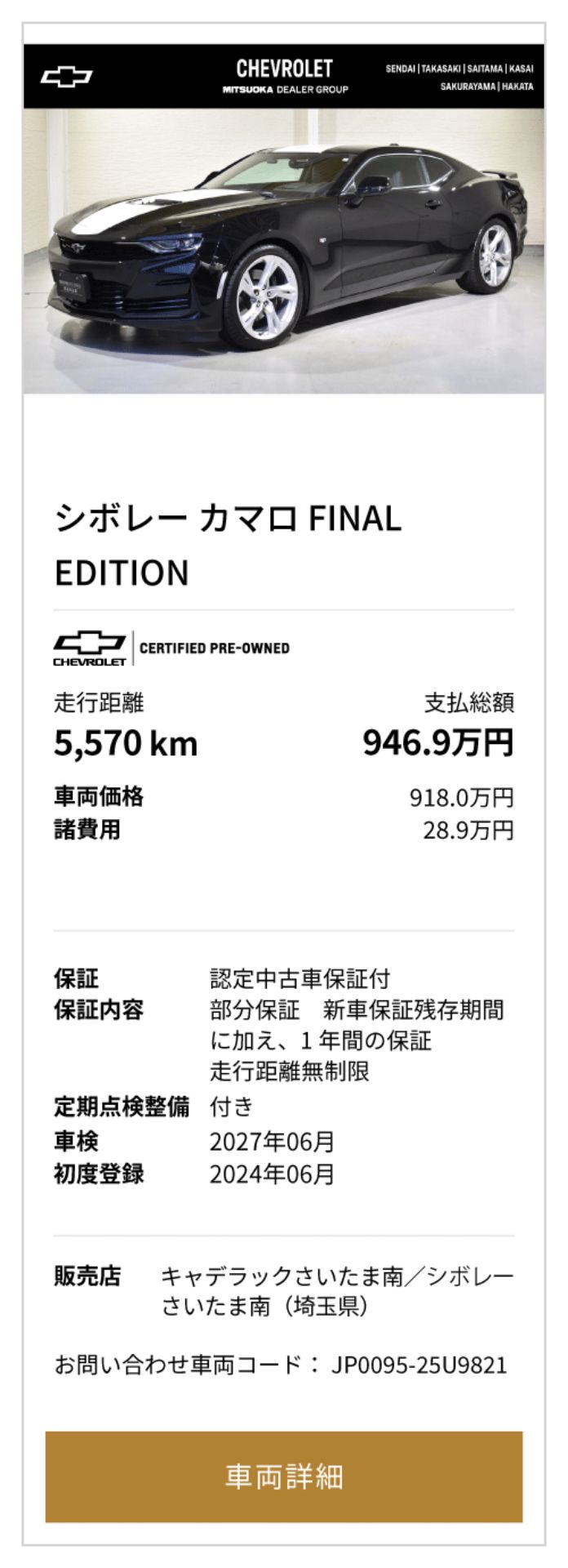 シボレー 認定中古車(シボレー葛西/さいたま南/高崎)
