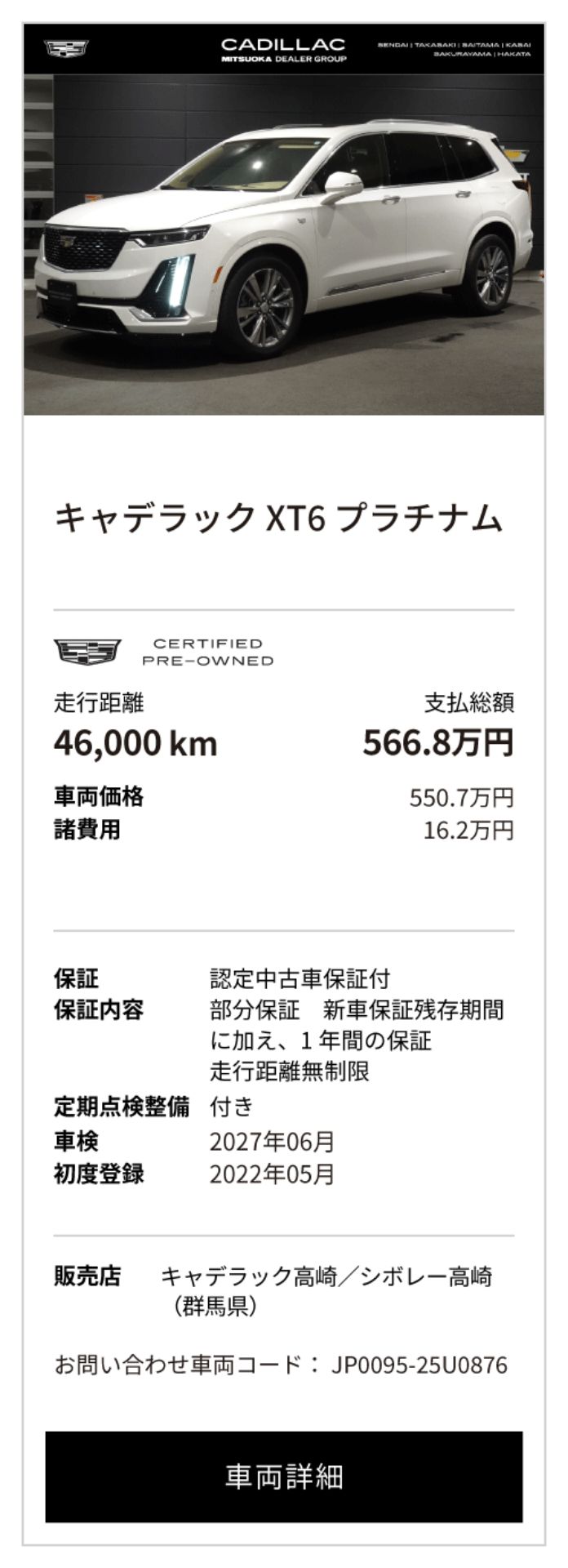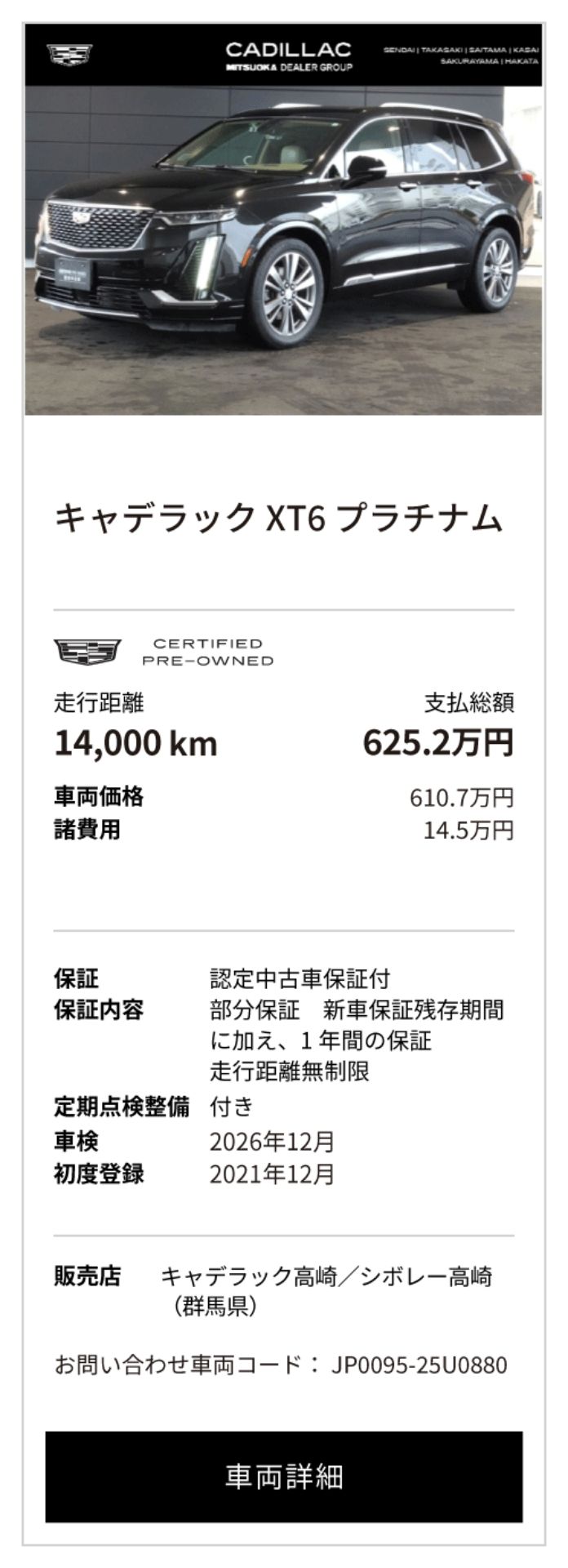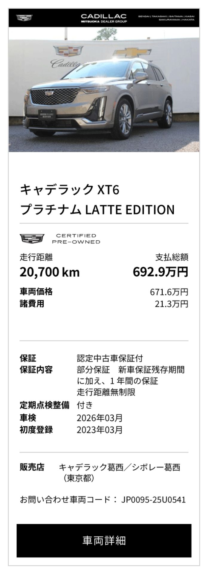 キャデラック XT6 掲載台数 4台(1/1時点)