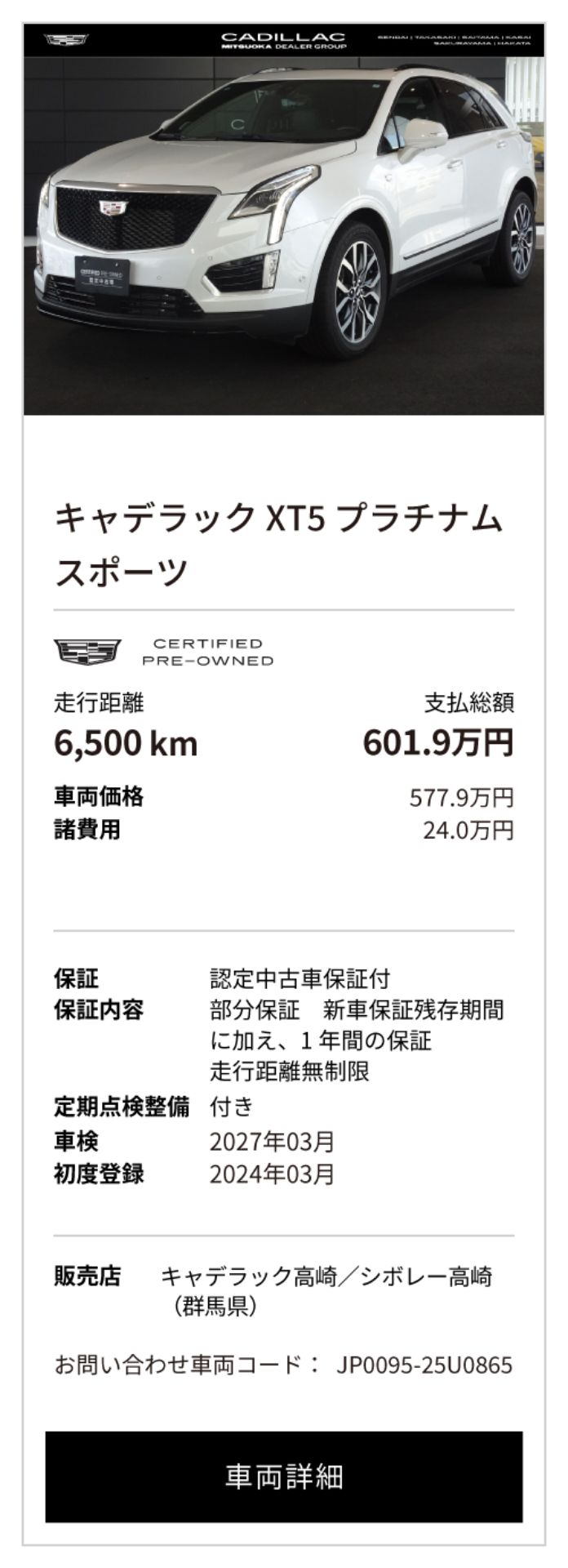 キャデラック XT6 中古車一覧