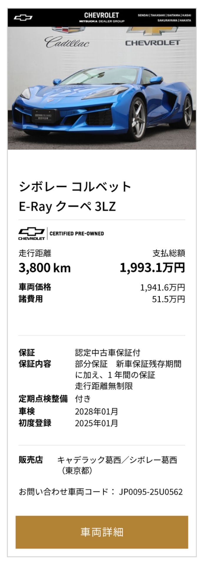シボレー コルベット E-Ray 掲載台数1台 (3/1時点)
