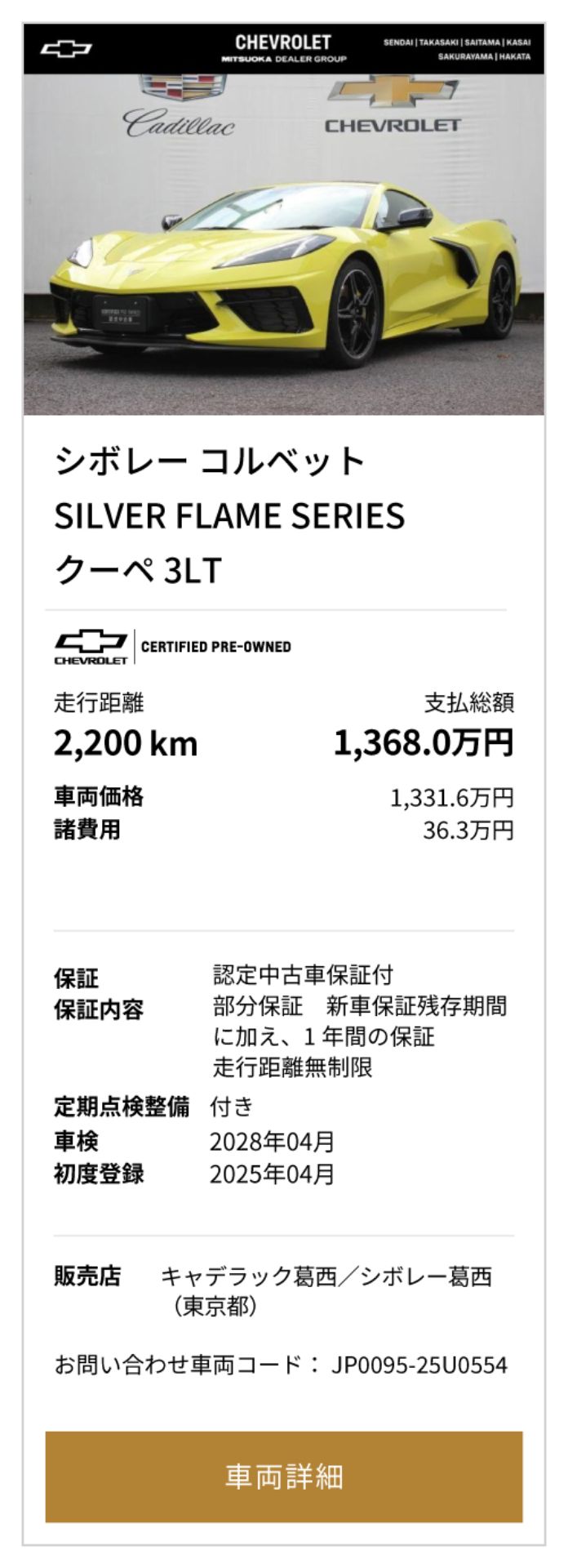対象:シボレー 認定中古車 コルベット