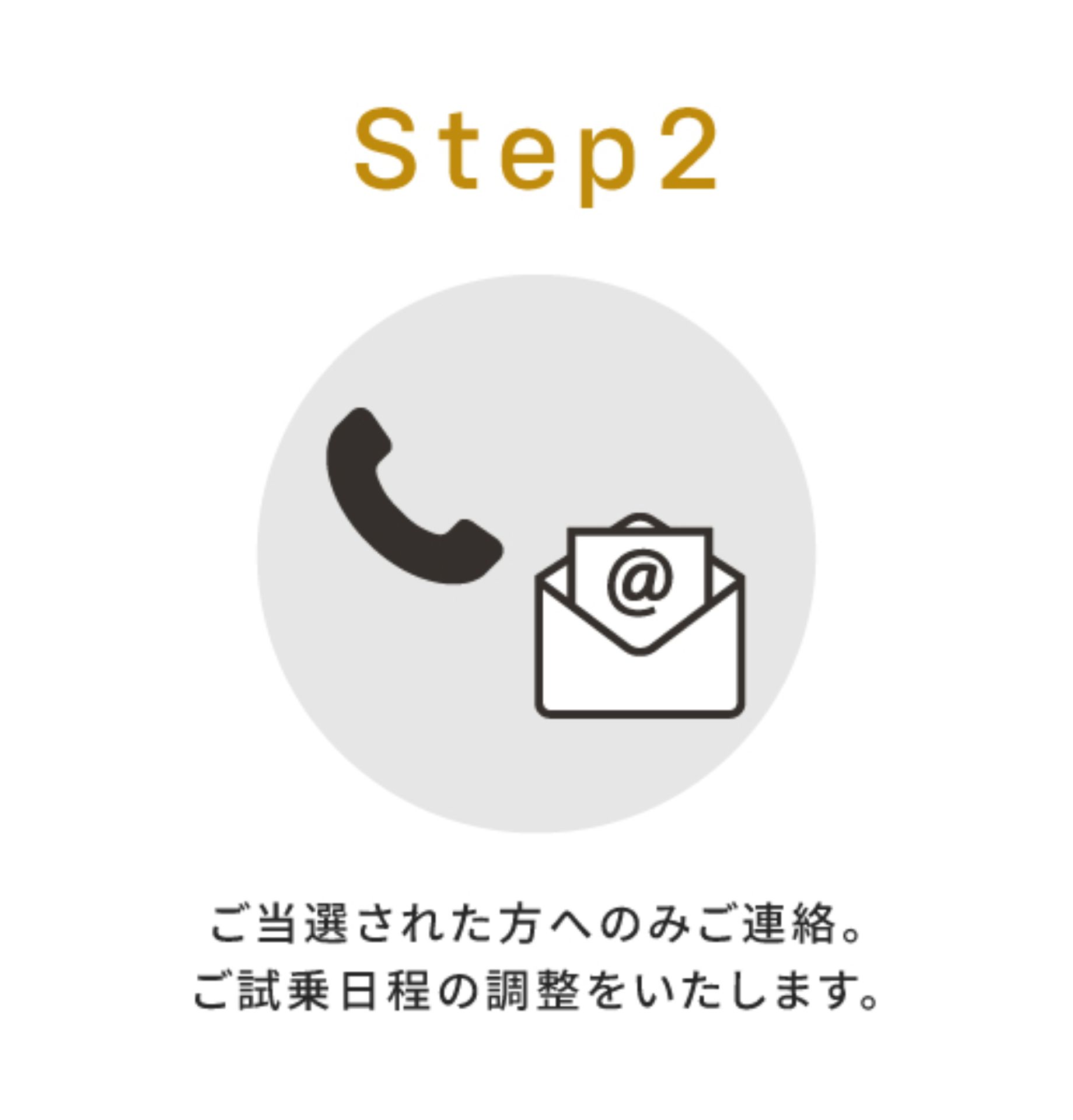 - 弊社試乗規定に同意し、遵守いただける方 またご当選者様以外の運転されるご家族の方の情報は事前に事務局よりご確認させていただきます。