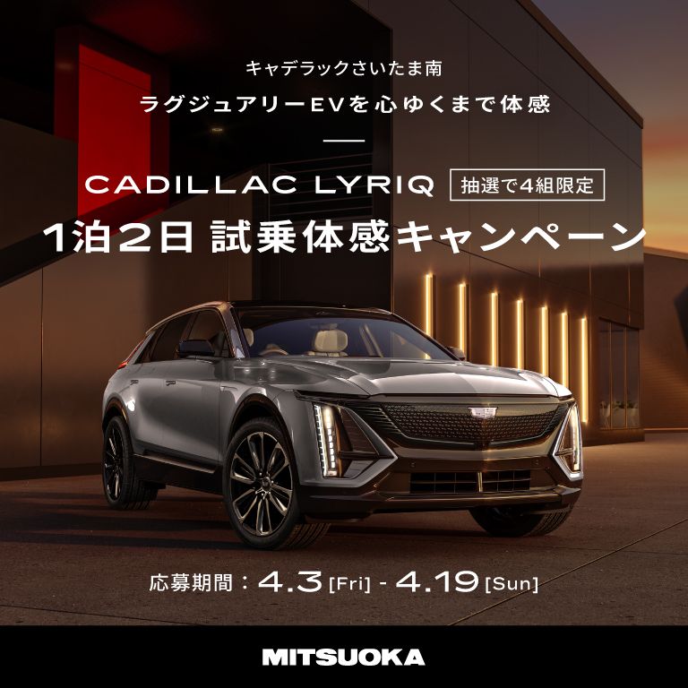 ※キャデラック リリック試乗モニターキャンペーンはキャデラックさいたま南のみでご案内いたします。