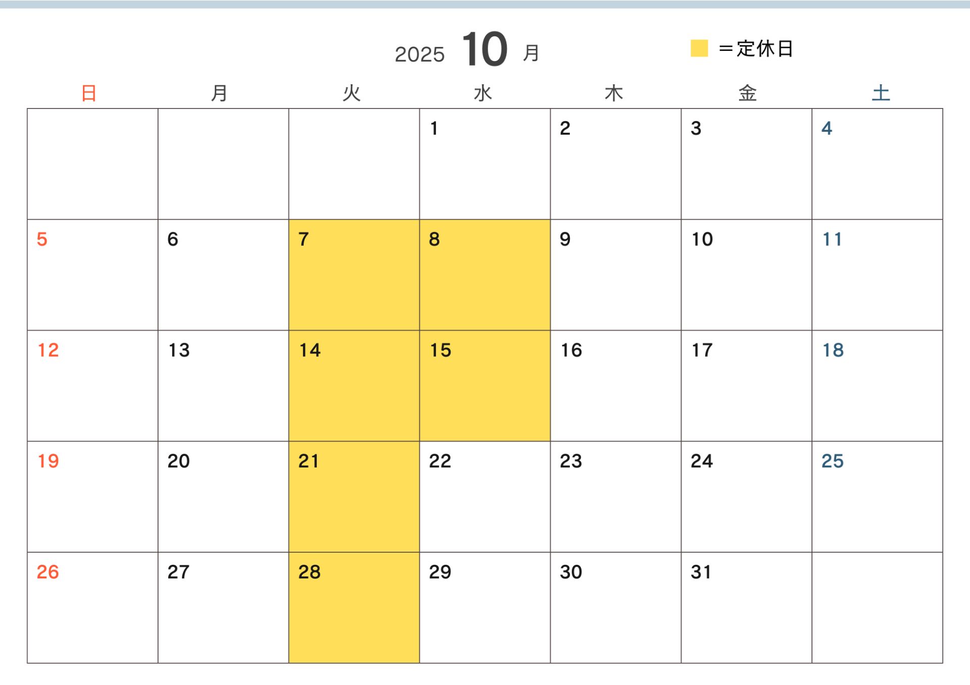 毎週火曜日と第二・第三水曜日が休業となっておりますのでよろしくお願いいたします。