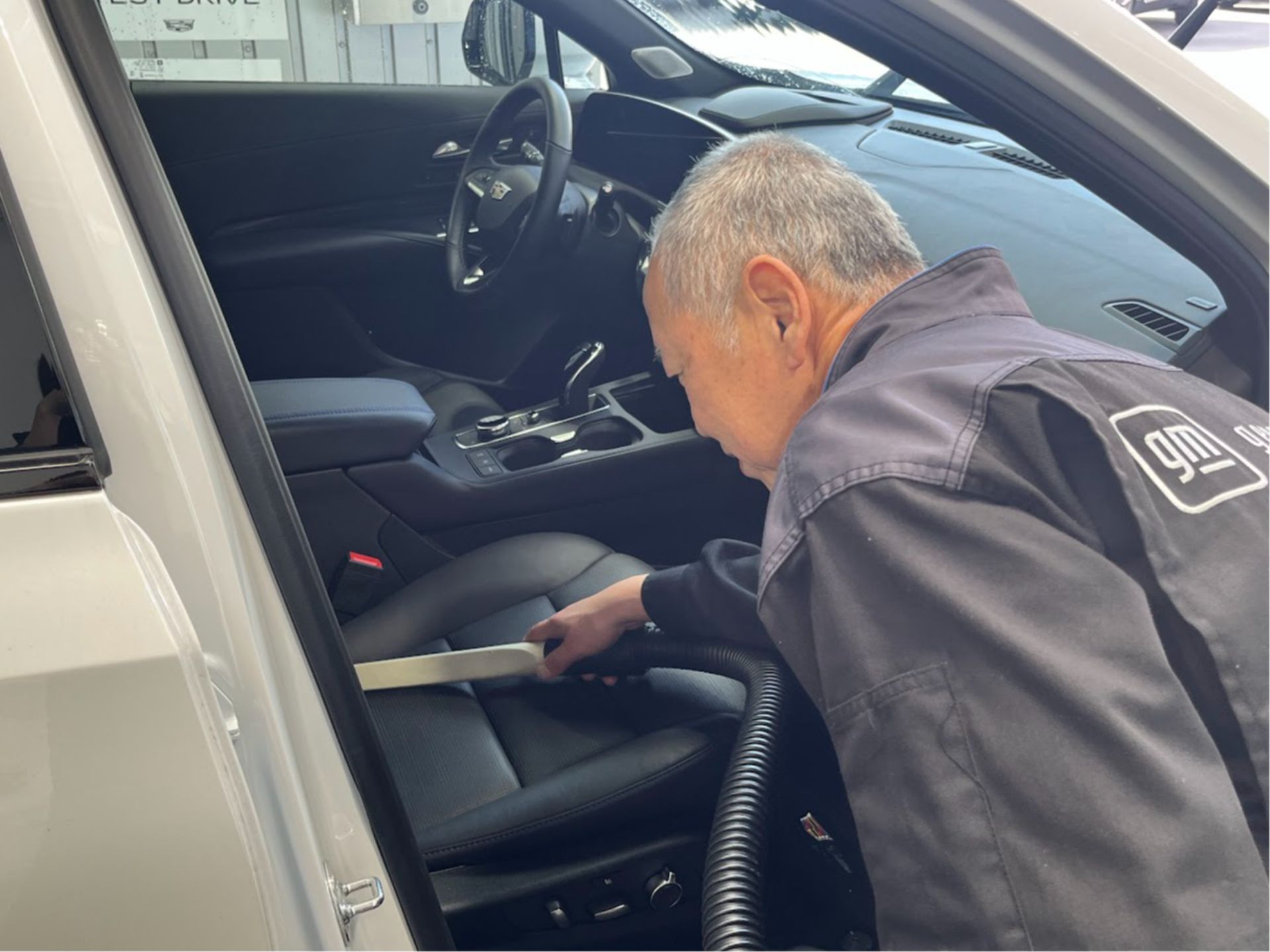 まずは、シートの隙間や足元の砂・ゴミを掃除機でしっかりと吸い上げます🧹