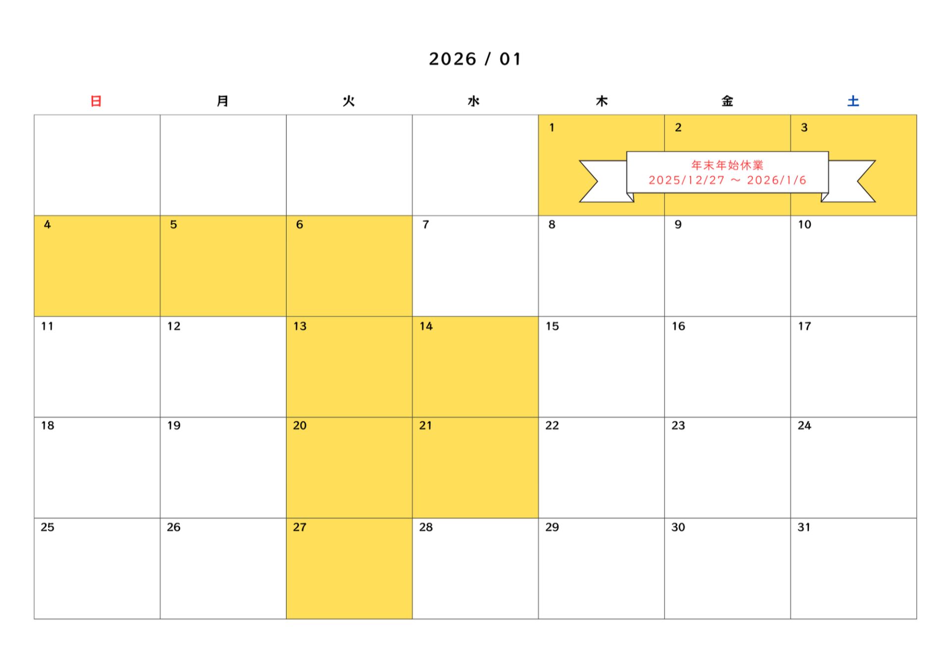 2025年12月27日(土)~ 2026年1月6日(火)は年末年始休業となります。
