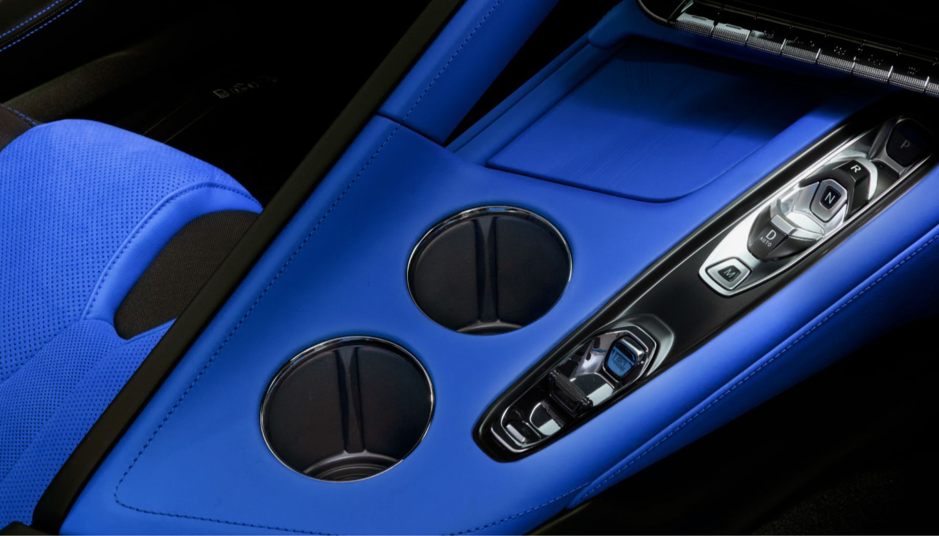 カップホルダーにはアンビエントライトを施し、底部にはコルベットの象徴である