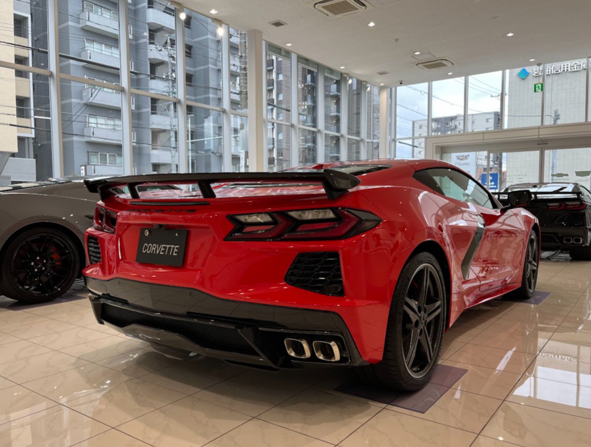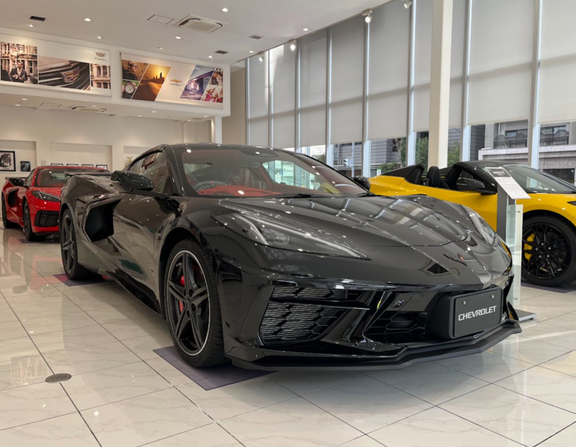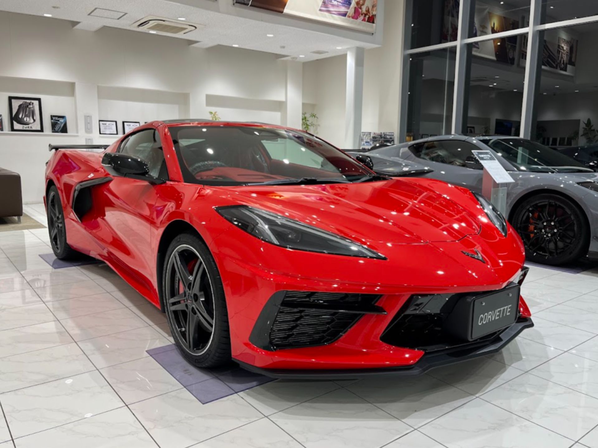 CORVETTE Z06 特別試乗会に向けて、ショールーム内の展示車を