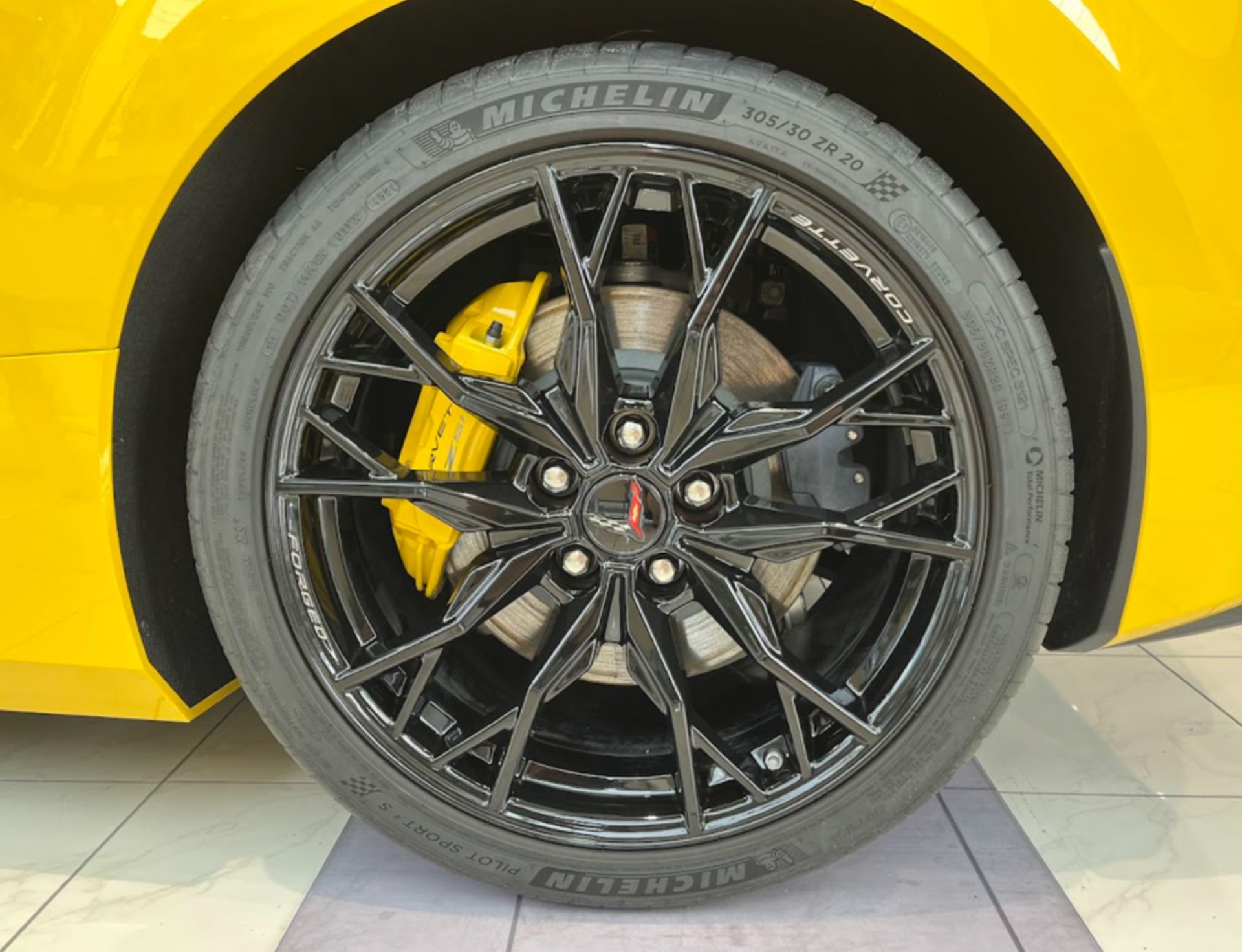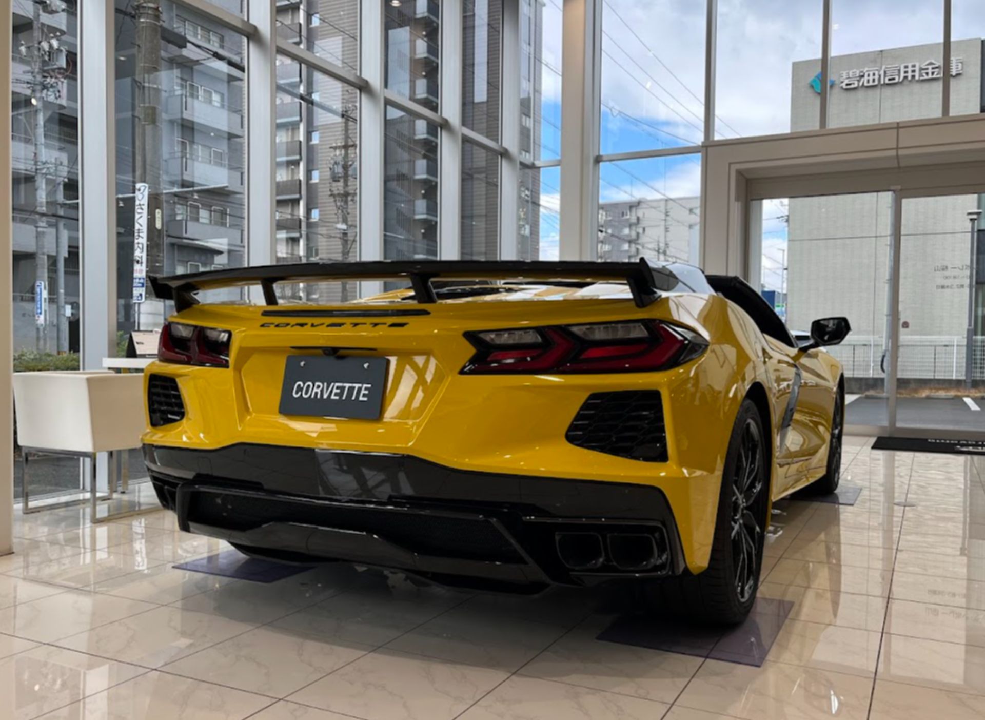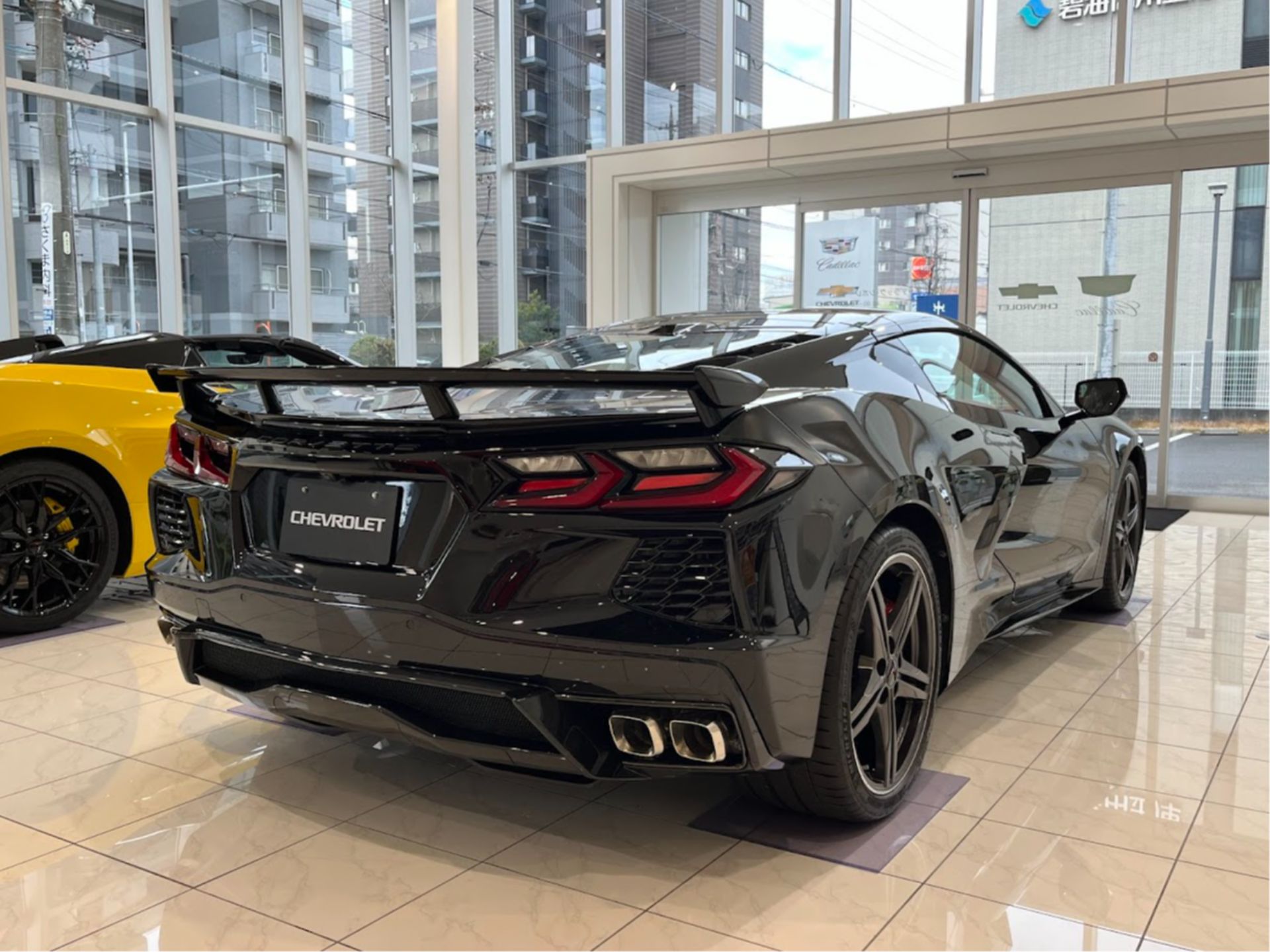 CORVETTE Z06 特別試乗会に向けて、ショールーム内の展示車を