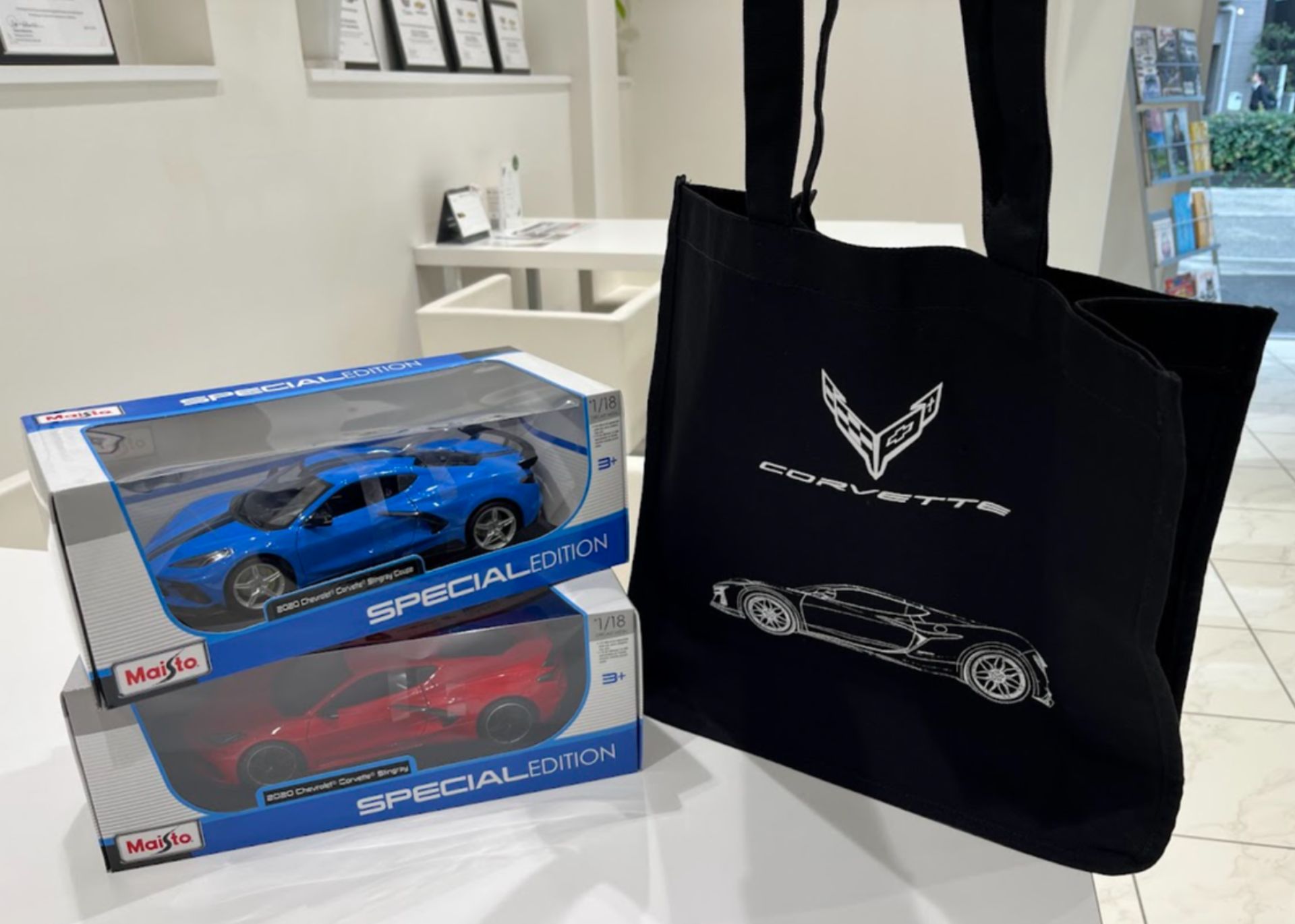 当店で販売している1:18 コルベット ダイキャストを2台入れてみました!