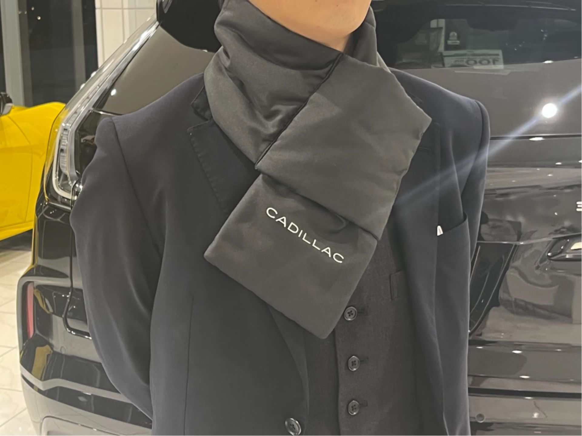 営業の大山にキルティングマフラーを巻いてもらいました🧣