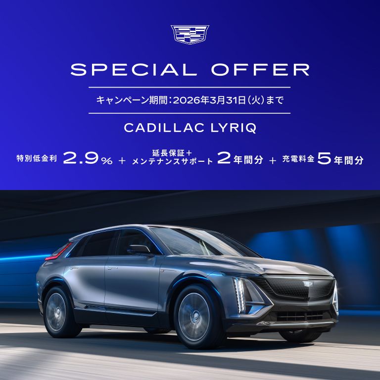 [期間:3/31まで] キャデラック リリック 2.9% 特別金利オファー and 延長保証+メンテナンスサポート2年間分 and 充電料金5年間分 プレゼント