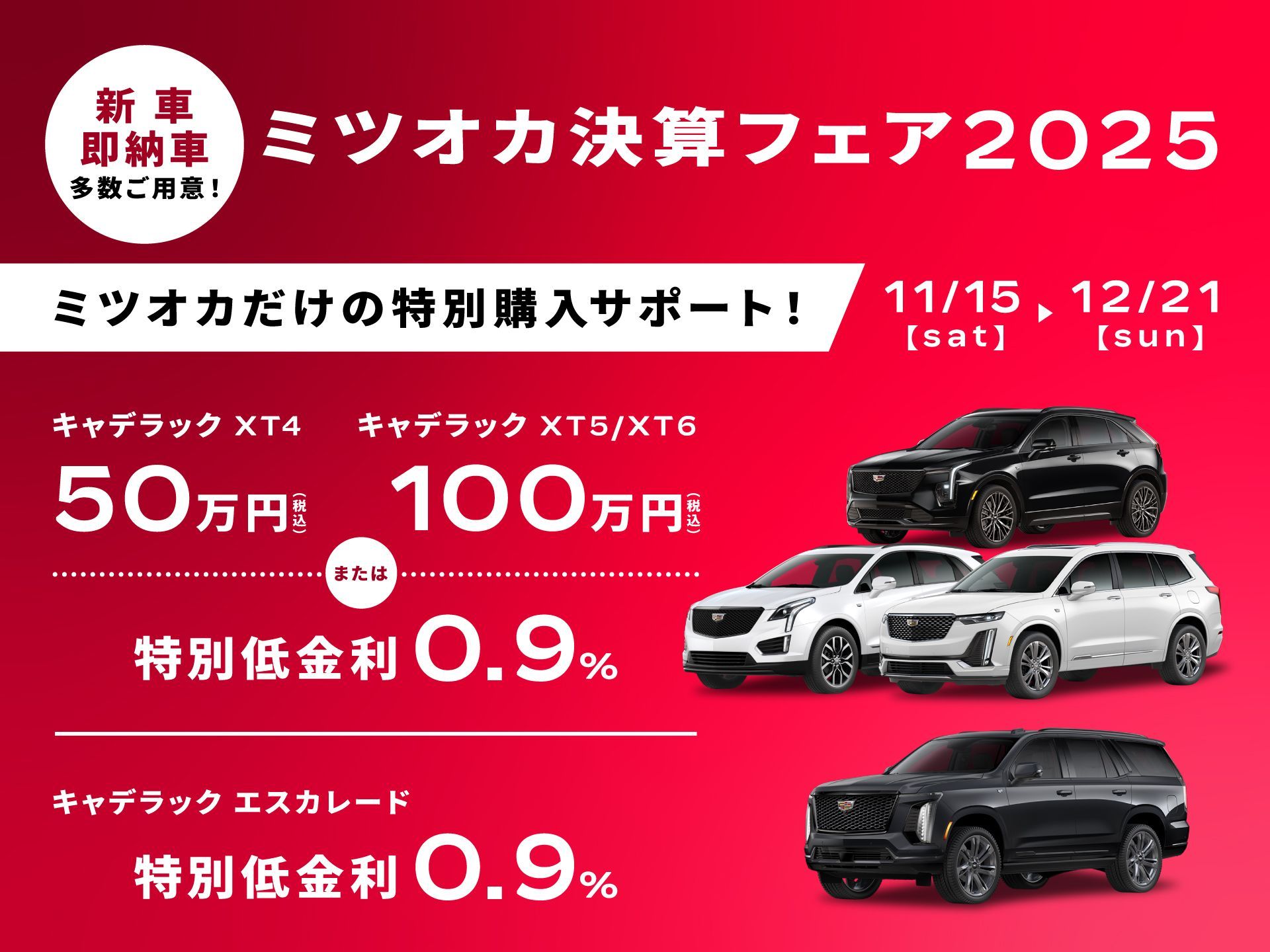 本フェアでは、キャデラックとシボレーがどちらも大変お得に手に入る
