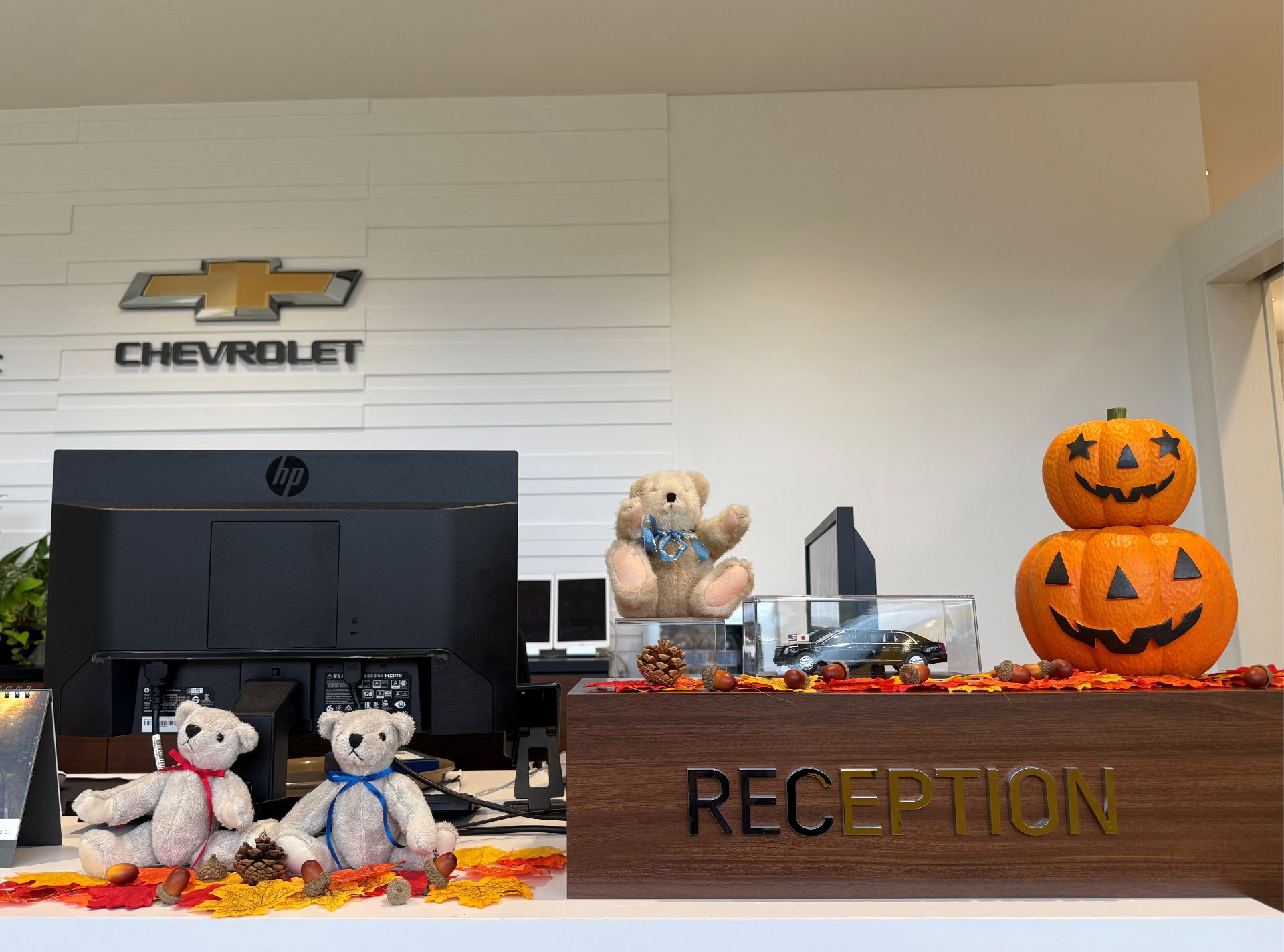 ショウルーム入り口ではかぼちゃとお化けが皆様を歓迎いたします😊