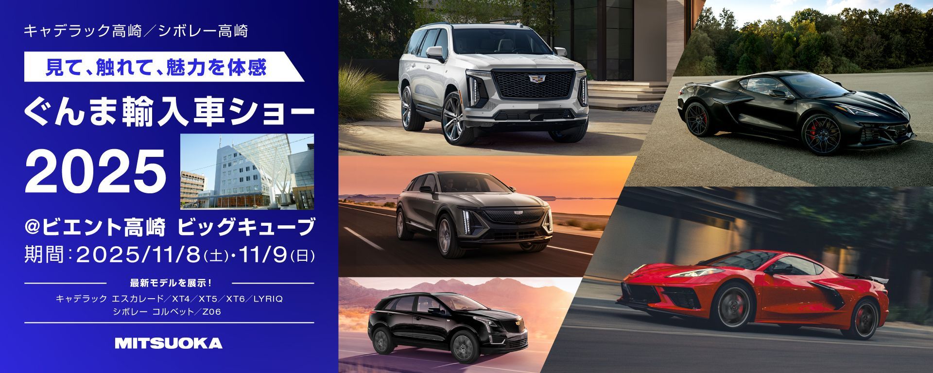 さらに輸入車ショーと同じく、2日間限定のキャデラック試乗フェア「FALL INTO THE CADILLAC フェア 」また「シボレー コルベット 商談会」も開催いたしております。会場で実車をご覧になった後にさらにその魅力を確かめていただくチャンスです。ご試乗予約も受付中! ぜひ、お気軽にお立ち寄りください👋😊