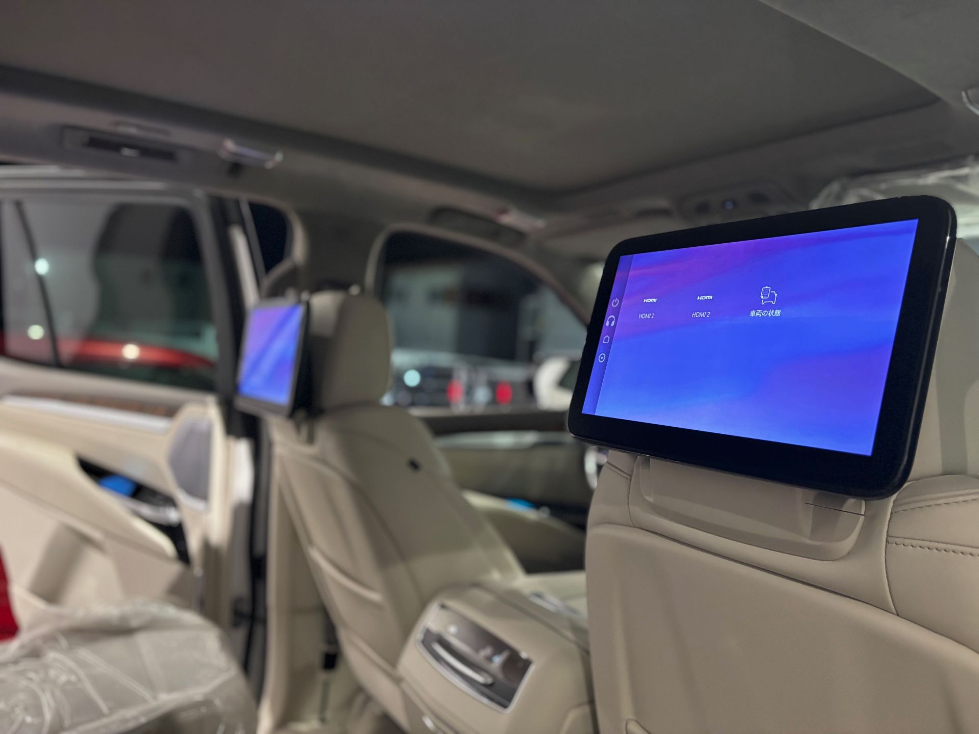 マイナーチェンジを遂げた新型エスカレードには、助手席側にも大型モニターを搭載。