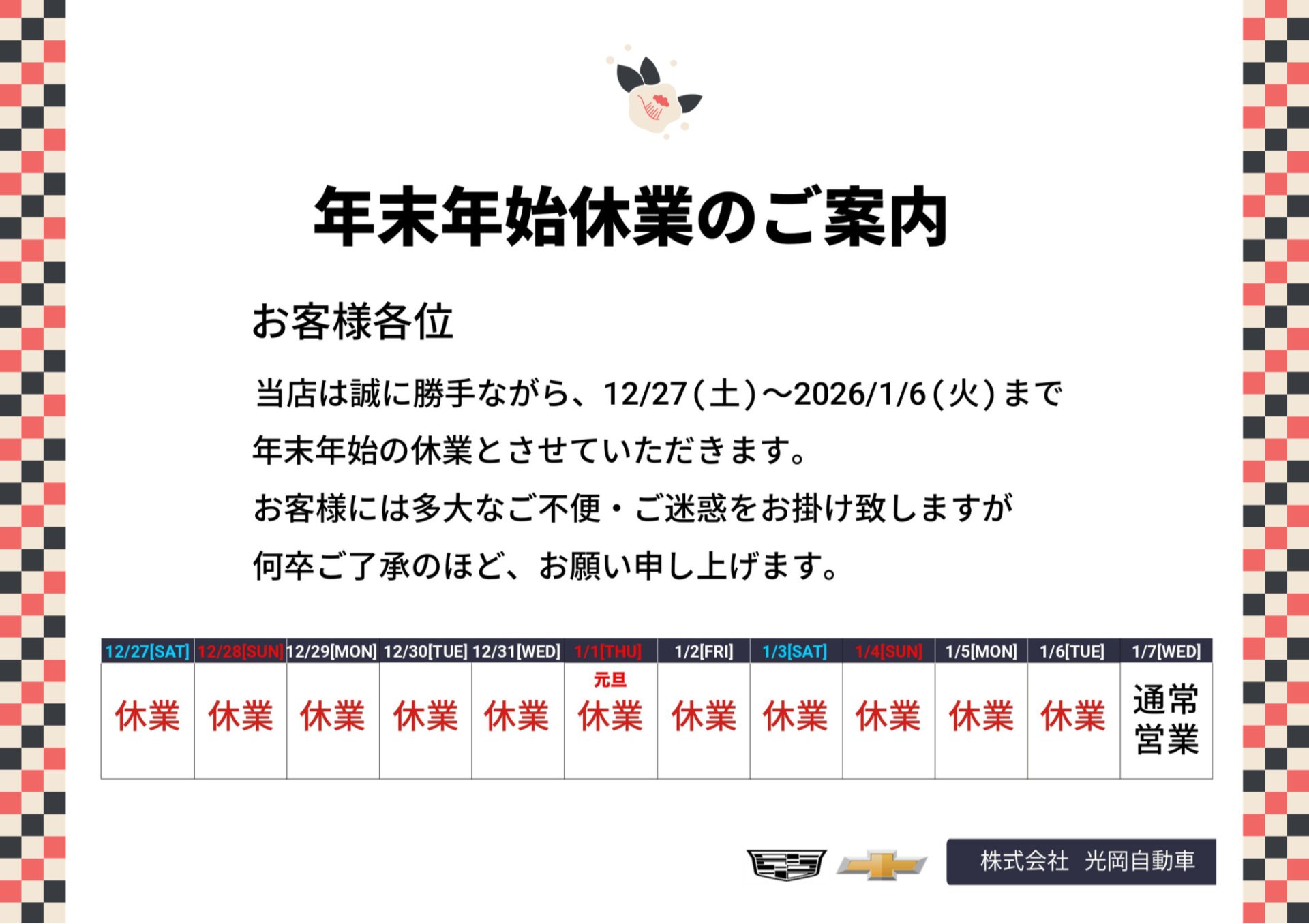 平素よりキャデラック高崎・シボレー高崎をご愛顧くださり、心より感謝申し上げます。