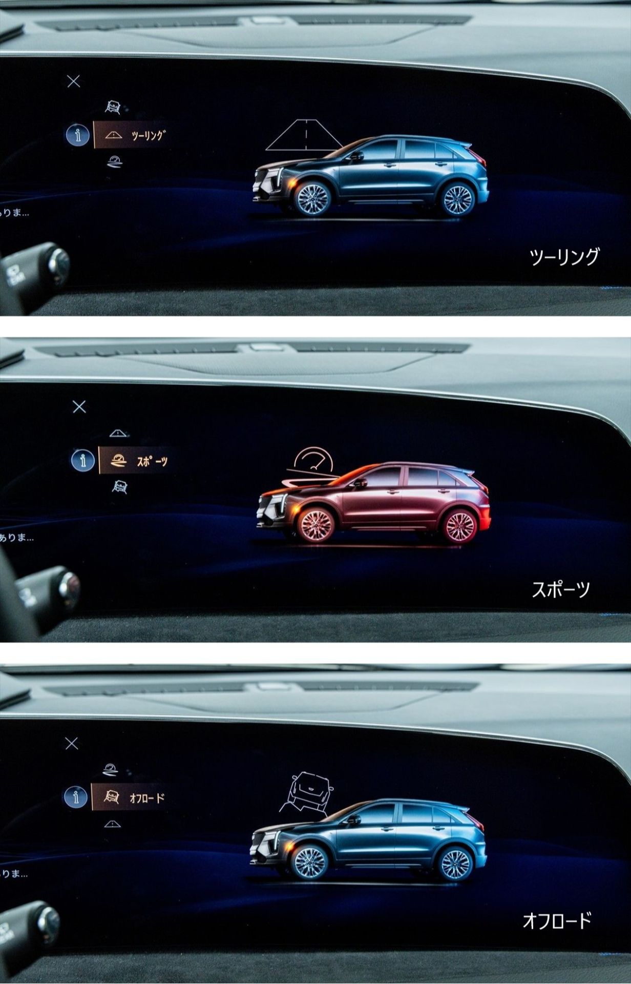 ツーリング (4WD・2WD)/スポーツ (4WD)/オフロード (4WD)が3種があり、日常走行ではツーリング(2WD)を設定いただけると、燃費向上に繋がります🔥
