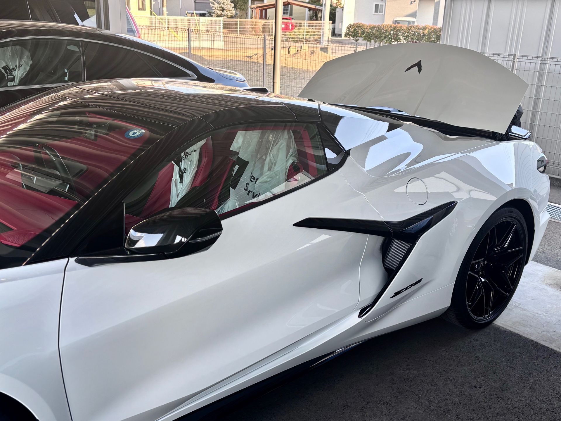 試乗車のコルベット Z06 コンバーチブルは、ただいまメカニックがメンテナンス中🔧