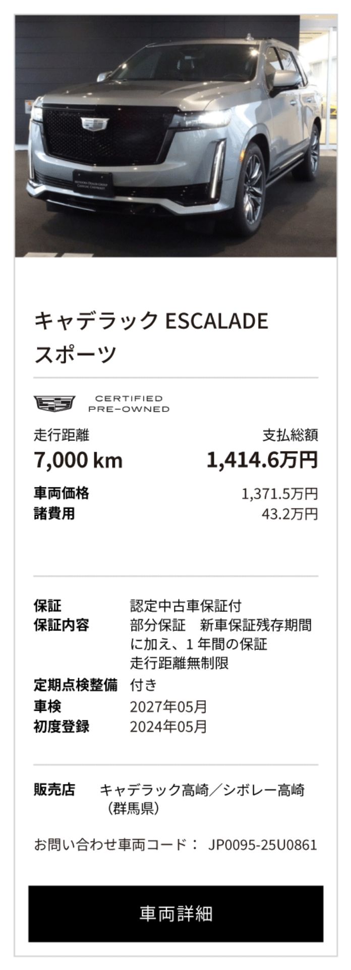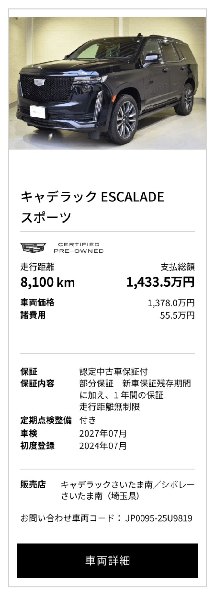 キャデラック 認定中古車(シボレー葛西/さいたま南/高崎)