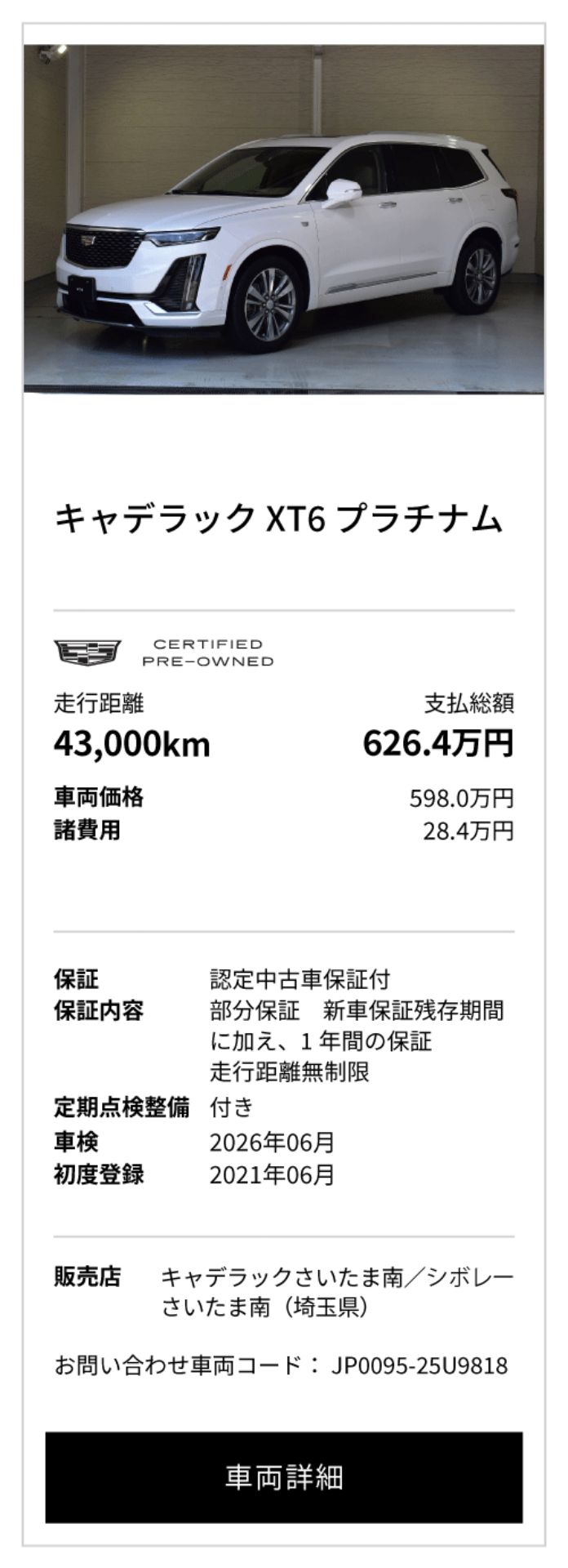 キャデラック XT6 掲載台数3台(10/1時点)