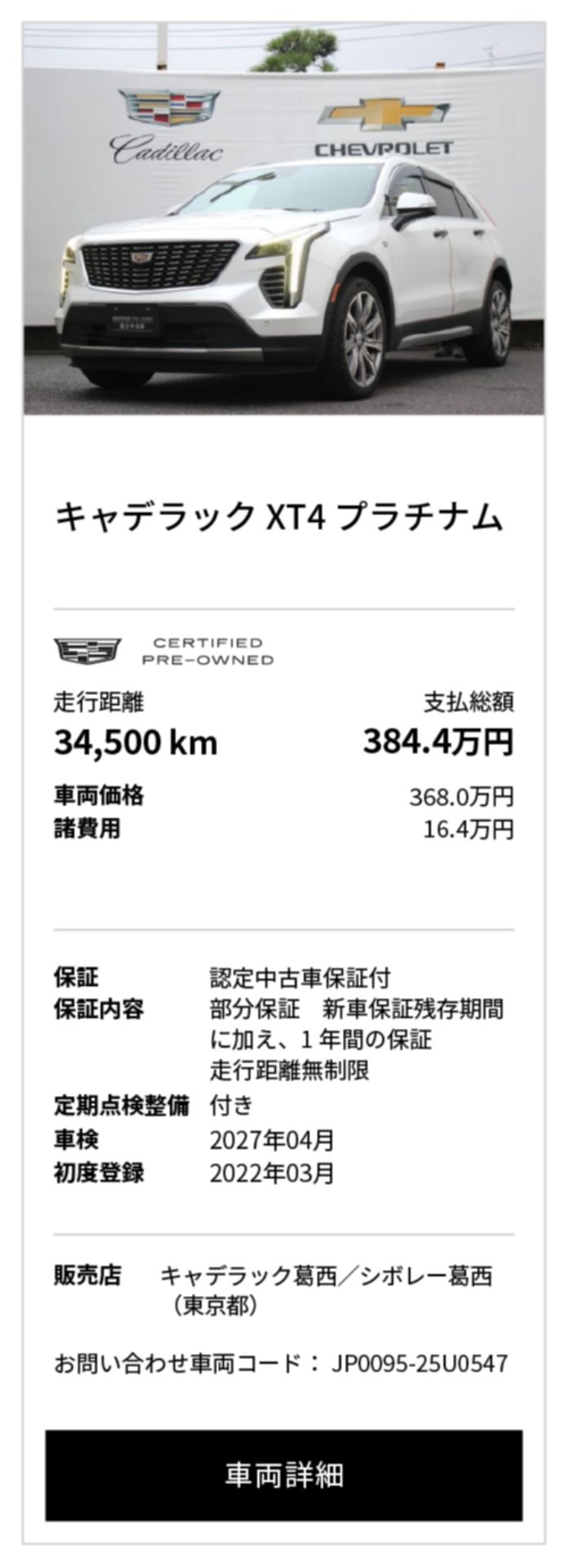 キャデラック XT4 中古車一覧