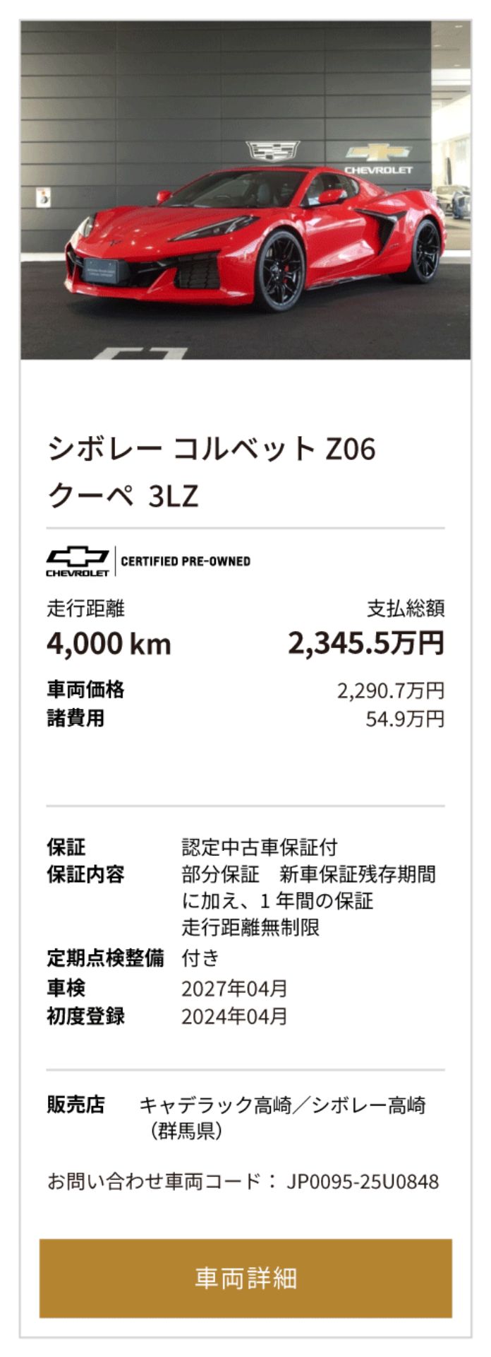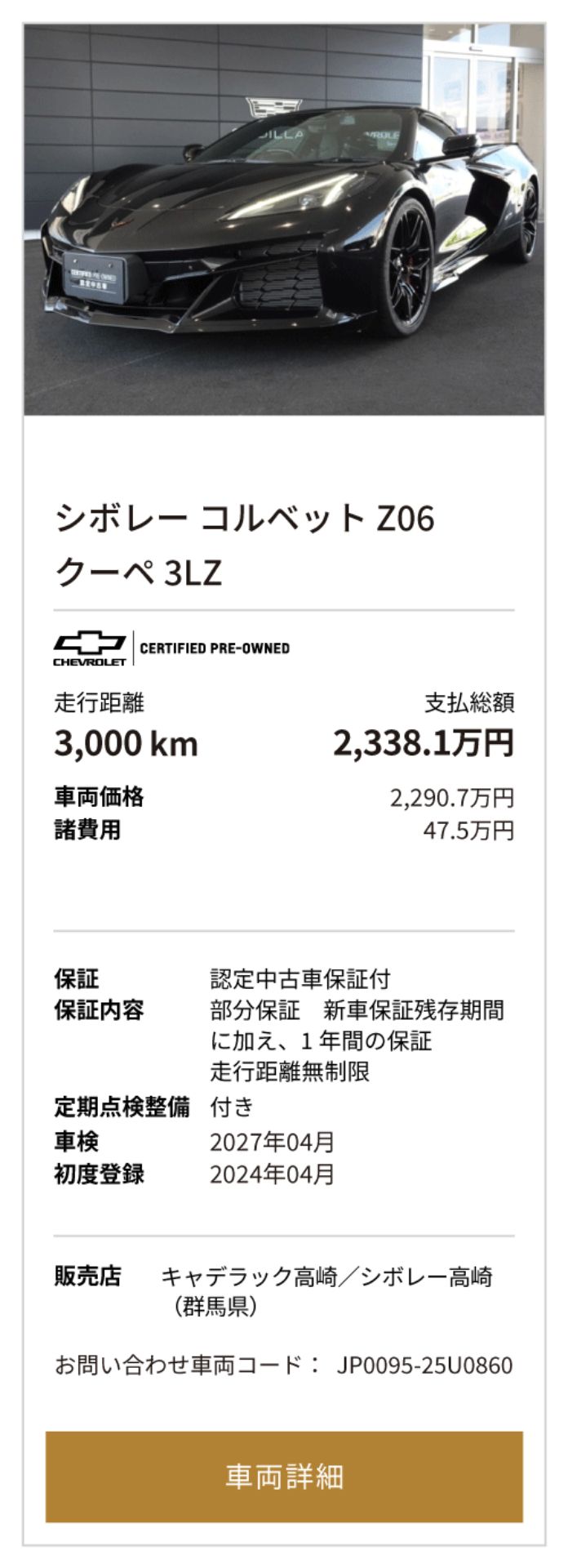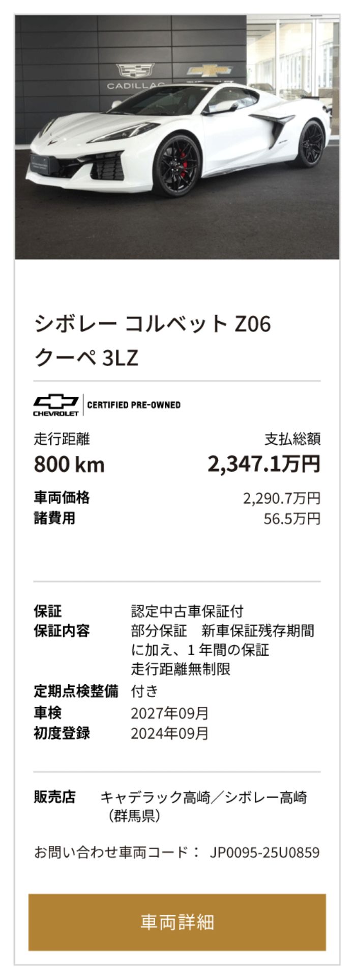シボレー コルベット Z06 掲載台数5台(10/1時点)
