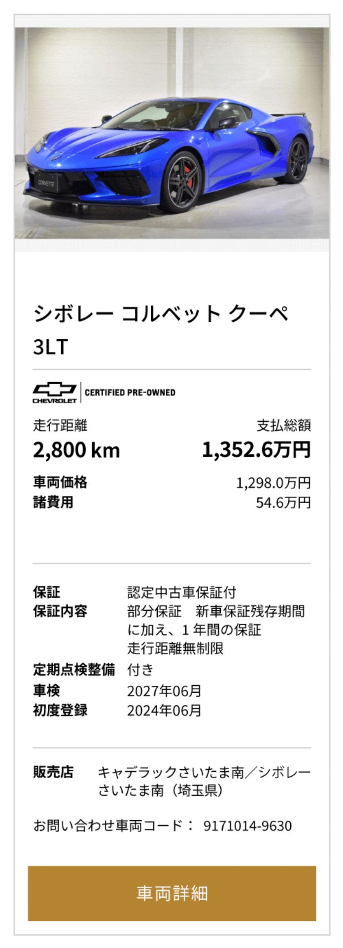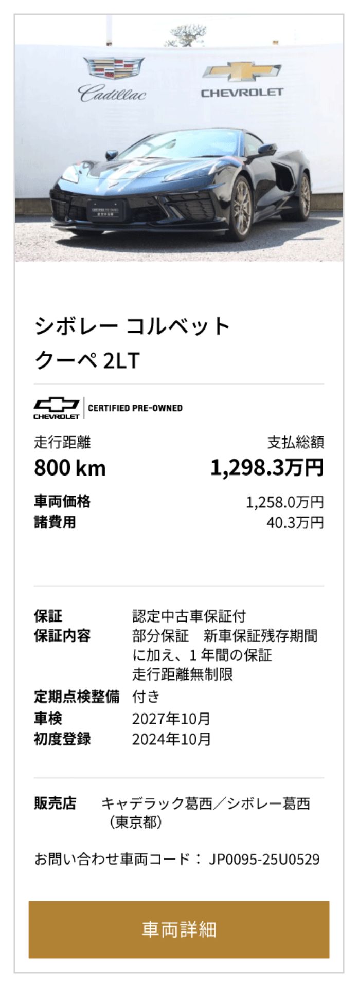 シボレー コルベット 中古車一覧