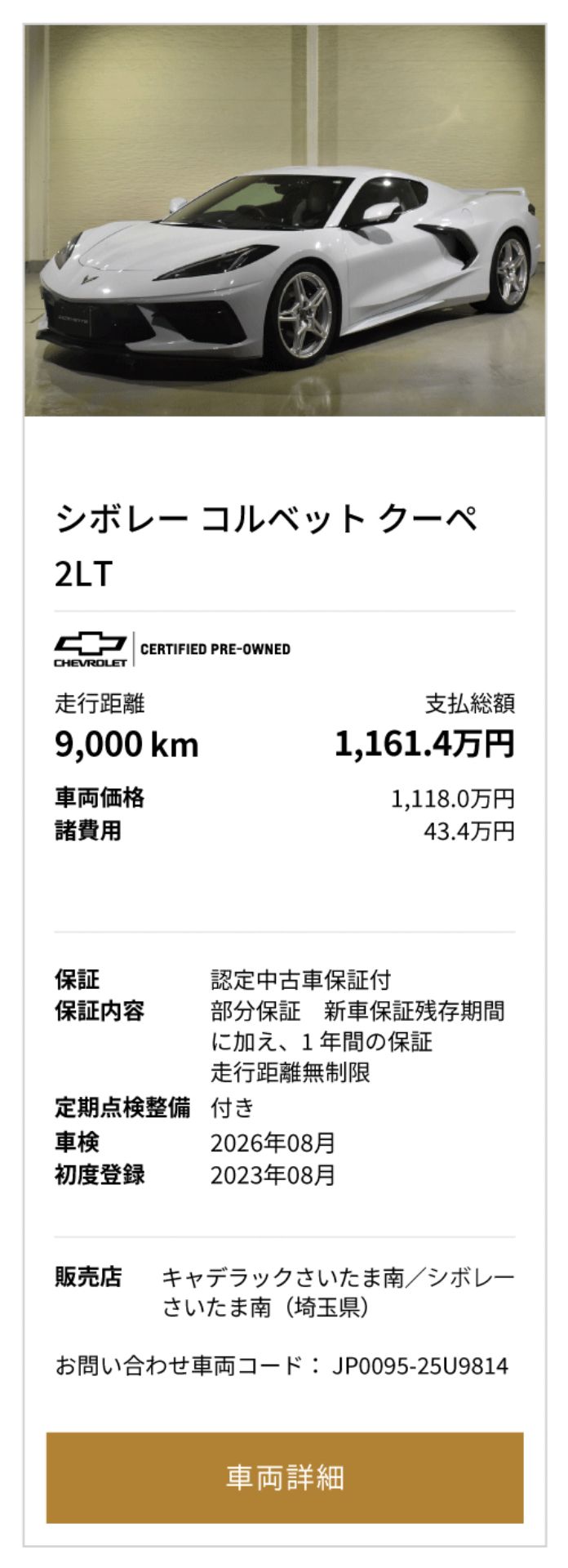 シボレー コルベット 掲載台数8台(10/1時点)