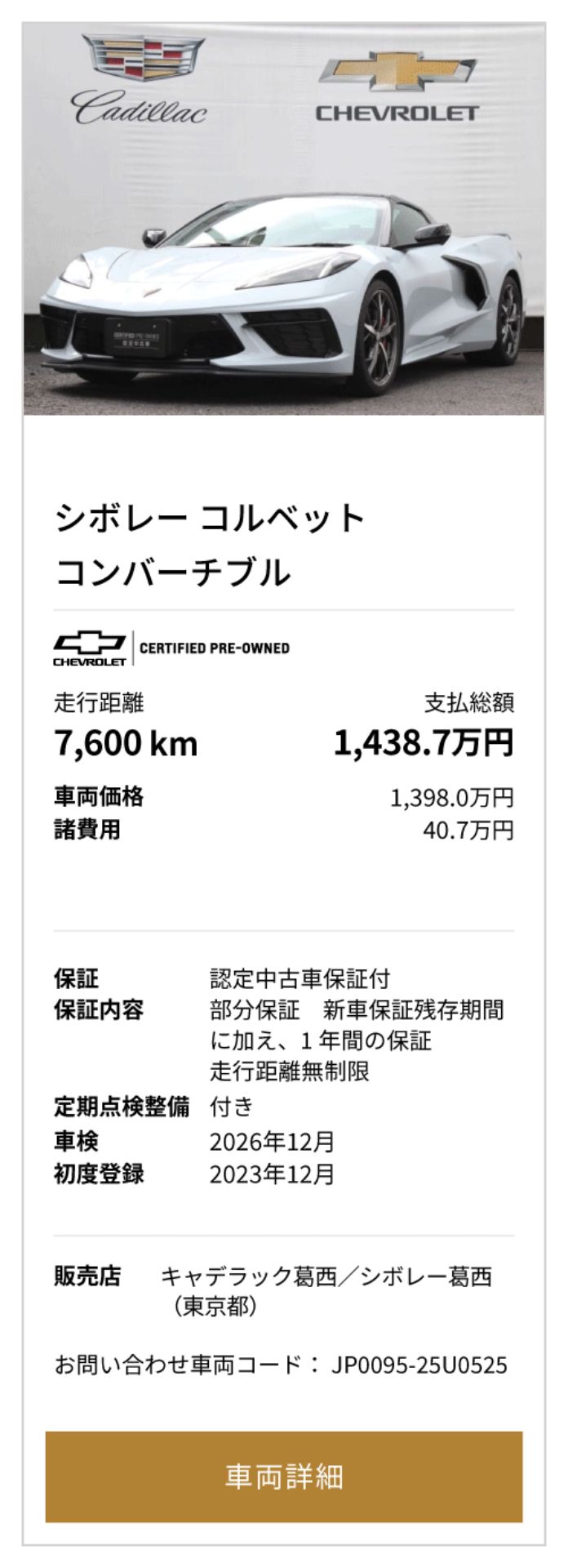 シボレー コルベット E-Ray 掲載台数1台(10/1時点)